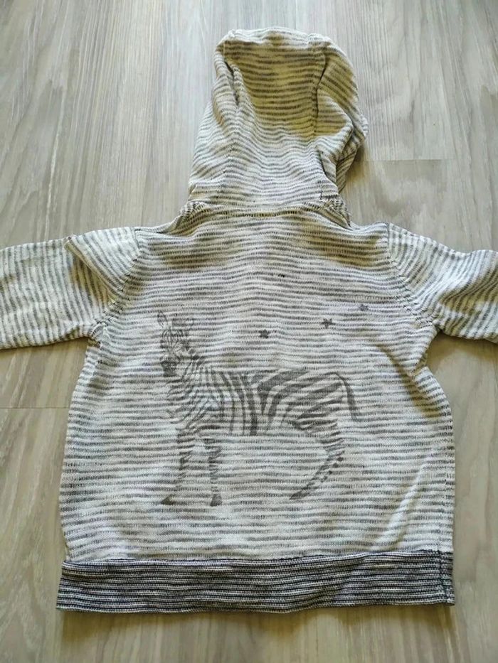 jolie veste a capuche 18 mois rayé sur différents tons de gris fine et matière souple et agréable dessin de zèbre ton sur ton dans le dos très bon état Pour voir toutes mes annonces de cette catégorie, suivez ce lien : #RetDgarçon18mois
