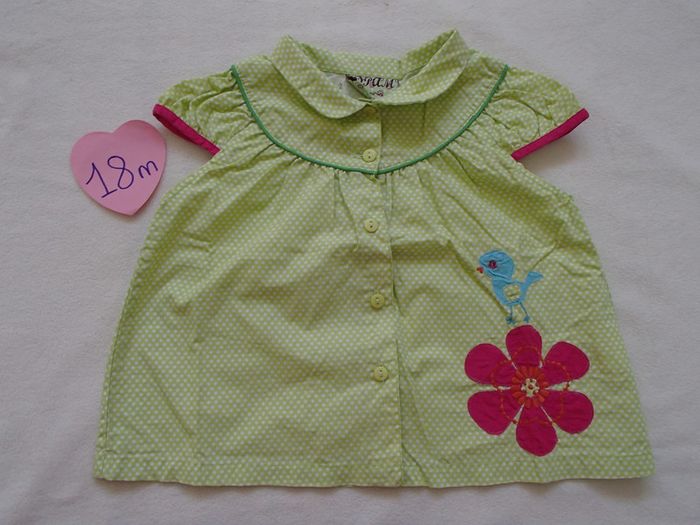 chemisier vert clair à pois blanc manche courte 18 mois motif à l'avant petit col bouton à l'avant tout le long Pour voir toutes mes annonces de cette catégorie, suivez ce lien : #RetDfille18mois