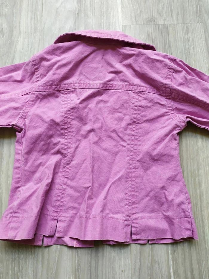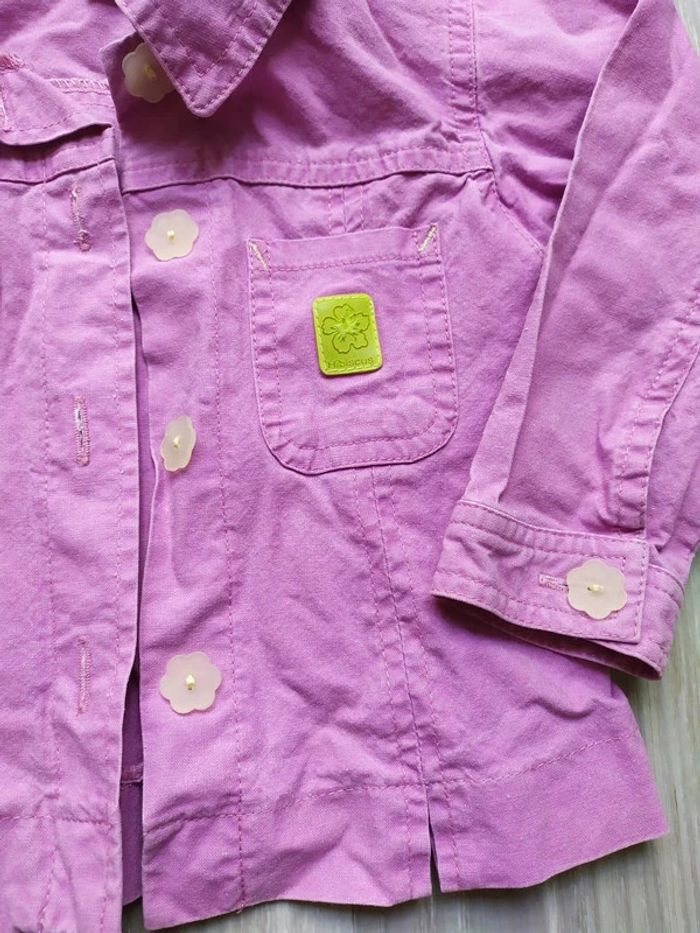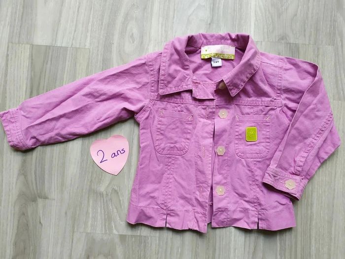 veste en jean rose 2 ans matière fine, souple et légère boutons en forme de fleurs 2 poches poitrine avec un logo vert anis Pour voir toutes mes annonces de cette catégorie, suivez ce lien : #RetDfillemanteau #RetDfille2ans