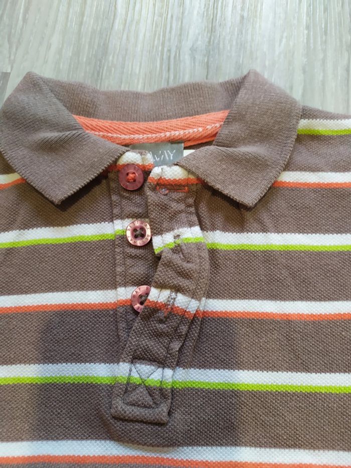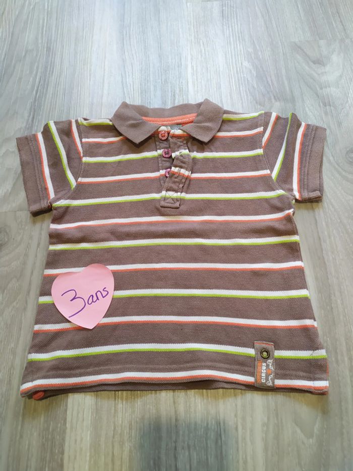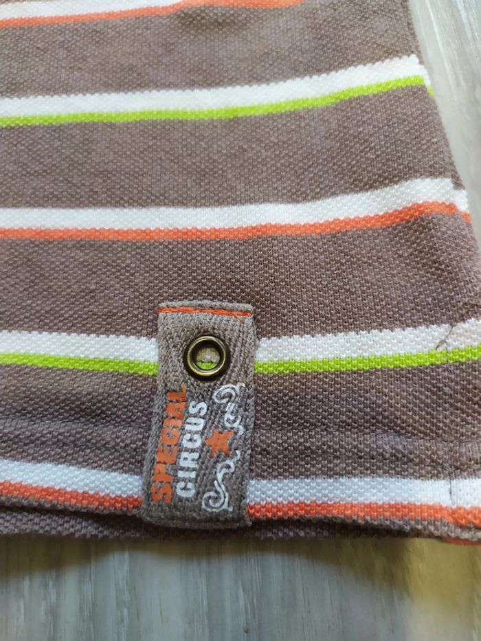 polo manches courte 3 ans marron clair rayé vert anis, orange et blanc Pour voir toutes mes annonces de cette catégorie, suivez ce lien : #RetDgarçon3ans