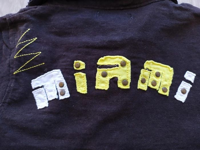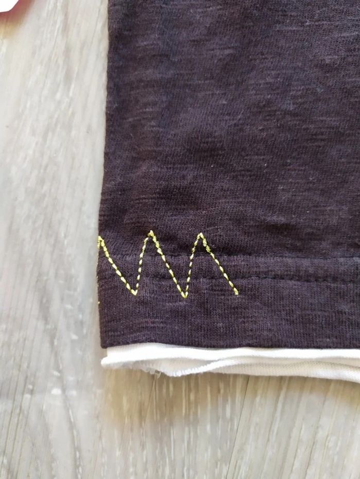 polo manches courte 12 mois effet superposition avec un t-shirt blanc motifs sur la poitrine et détails jaune au dos écriture Miami en blanc et jaune avec petits "clou" en métal Pour voir toutes mes annonces de cette catégorie, suivez ce lien : #RetDgarçon12mois