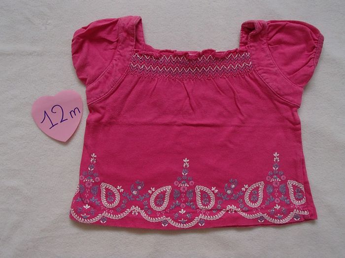 t-shirt manches courte 12 mois broderie au col devant motif brillant en bas devant dos uni Pour voir toutes mes annonces de cette catégorie, suivez ce lien : #RetDfille12mois