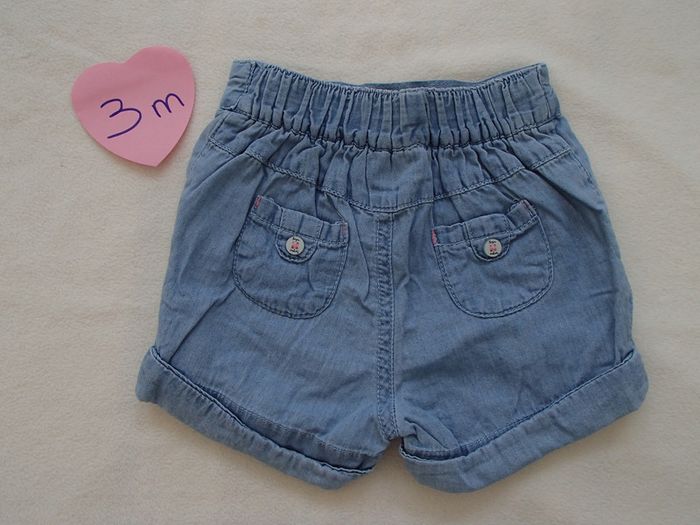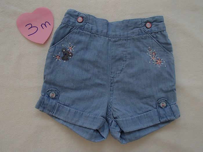 short effet jean 3 mois 2 poches devant 2 poches derriere 2 boutons pression déoratif à la ceinture 2 bouton décoratif en bas motifs en broderies sur les poches de devant fausse braguette comme neuf, porté 1-2 fois Pour voir toutes mes annonces de cette catégorie, suivez ce lien : #RetDfille3mois