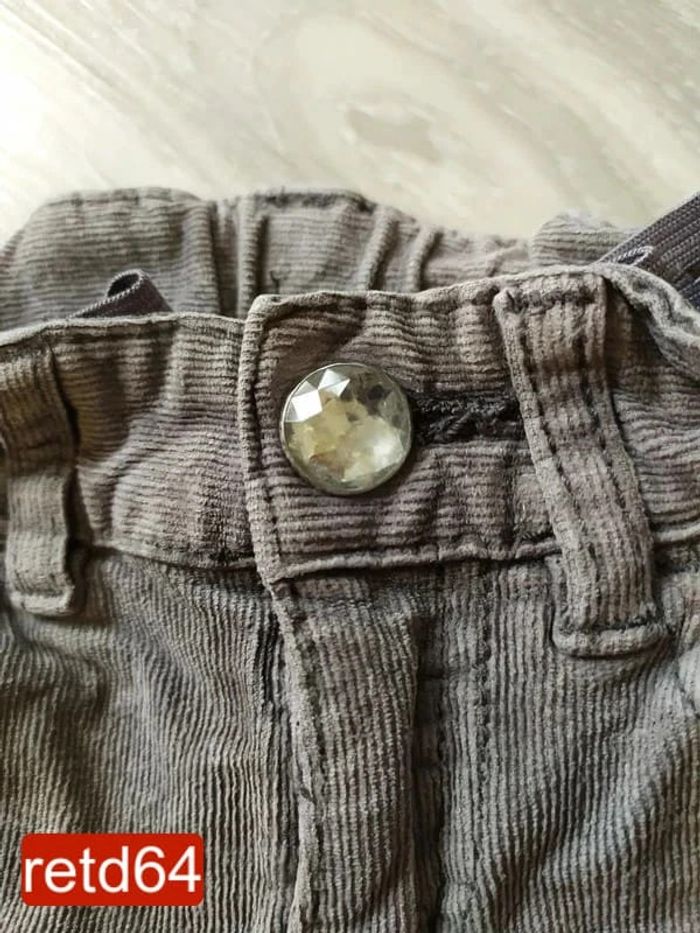pantalon velours à cote fine 2 ans gris taille réglable gros bouton pression "diamant" et braguette à zip 2 poches devant et 2 au dos Pour voir toutes mes annonces de cette catégorie, suivez ce lien : #RetDfille2ans