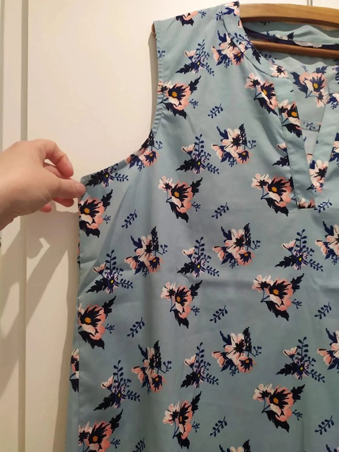joli haut bleu fleuri frais et fluide de chez zeeman taille 46 largeur aux épaules : 40 cm largeur aux aisselles : 58 cm largeur au bas : 62 cm hauteur : 78 cm longueur manche dessus : 45 cm Pour voir toutes mes annonces de cette catégorie, suivez ce lien : #RetDadulte