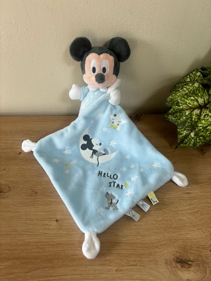 Doudou Mickey mouchoir bleu hello star Disney