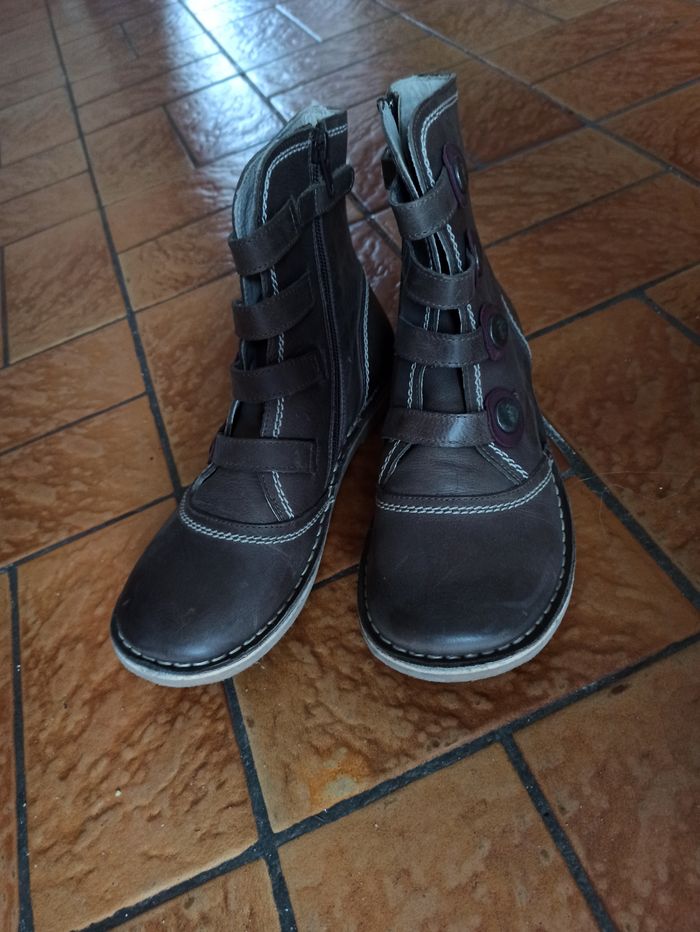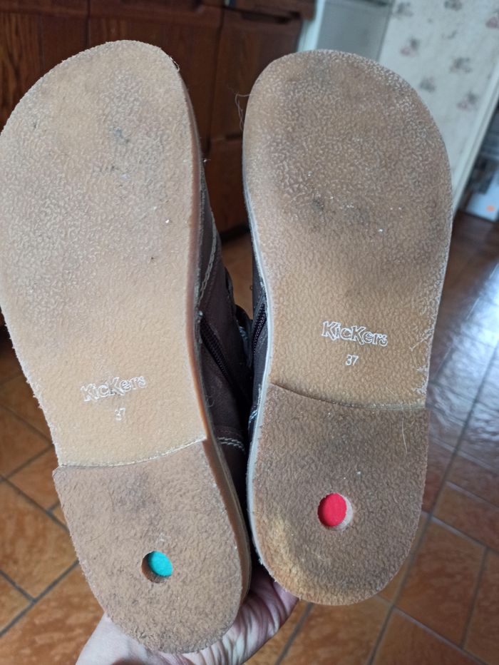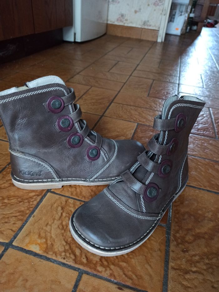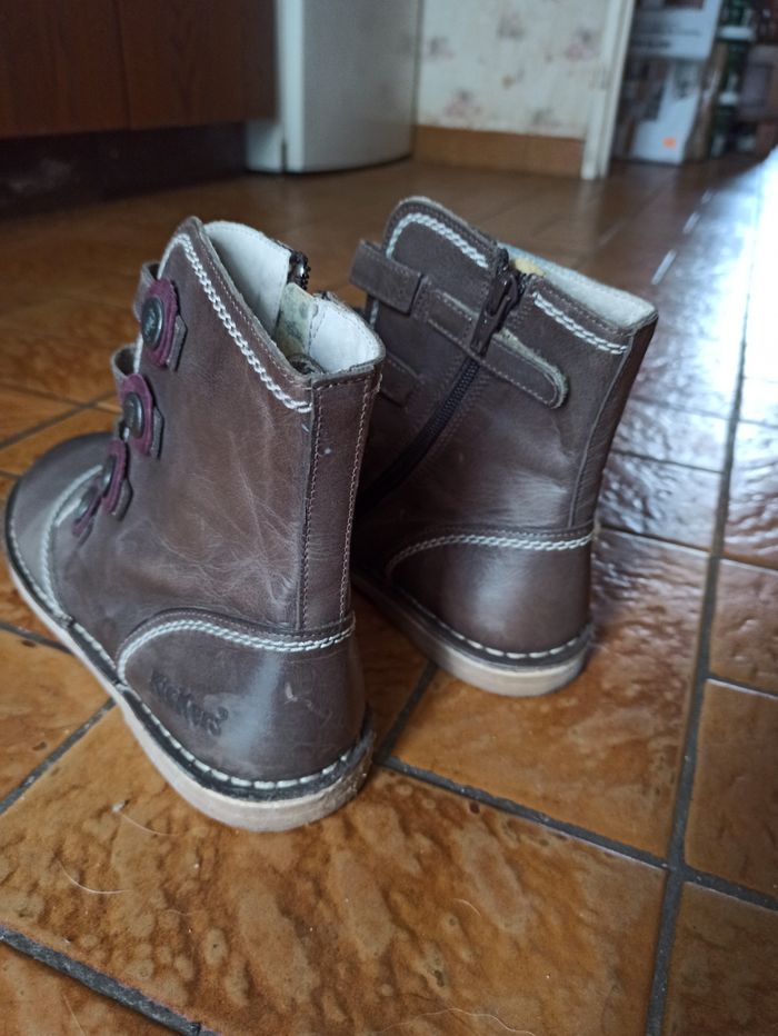 Magnifique paire de boots en cuir marron Elles n'ont été portées qu'une seule fois, très brièvement, elles sont donc comme neuves Seul défaut à signaler, des petites traces sur l'avant de la chaussure droite Elles sont parfaites avec toutes les tenues et donnent un look vintage à souhait ! Confort et qualité kickers