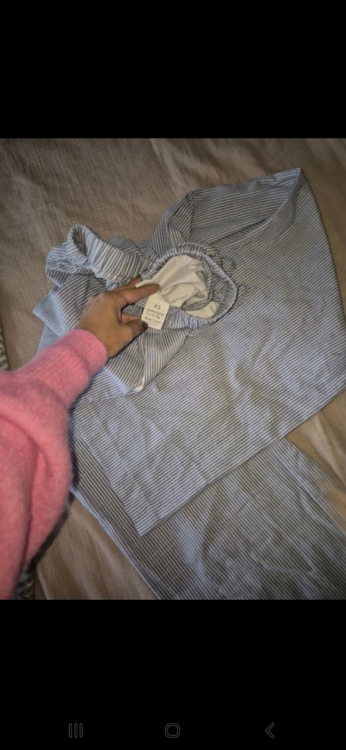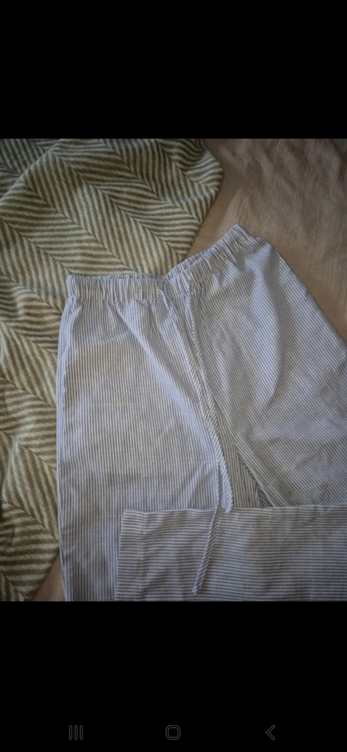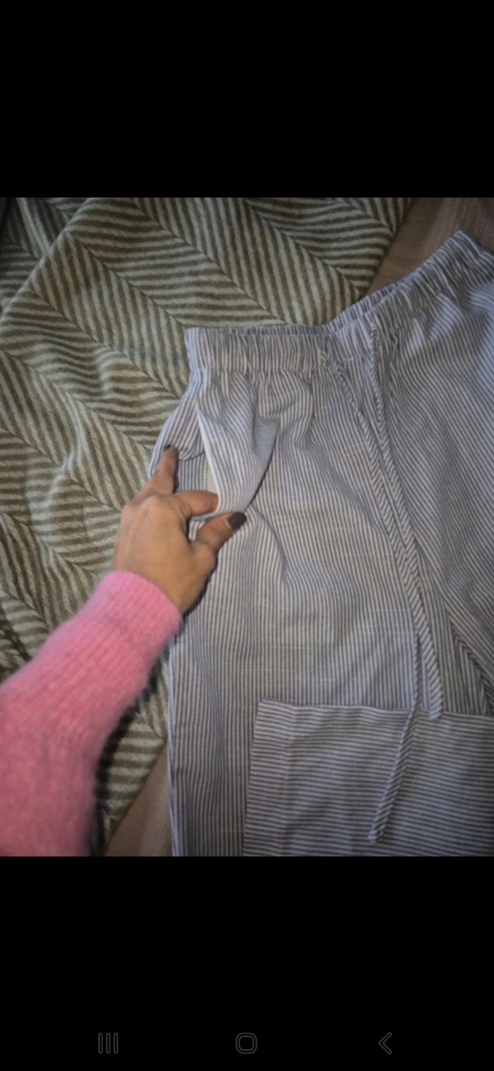 Pantalon léger à rayures taille xs en très bon état bleu et blanc