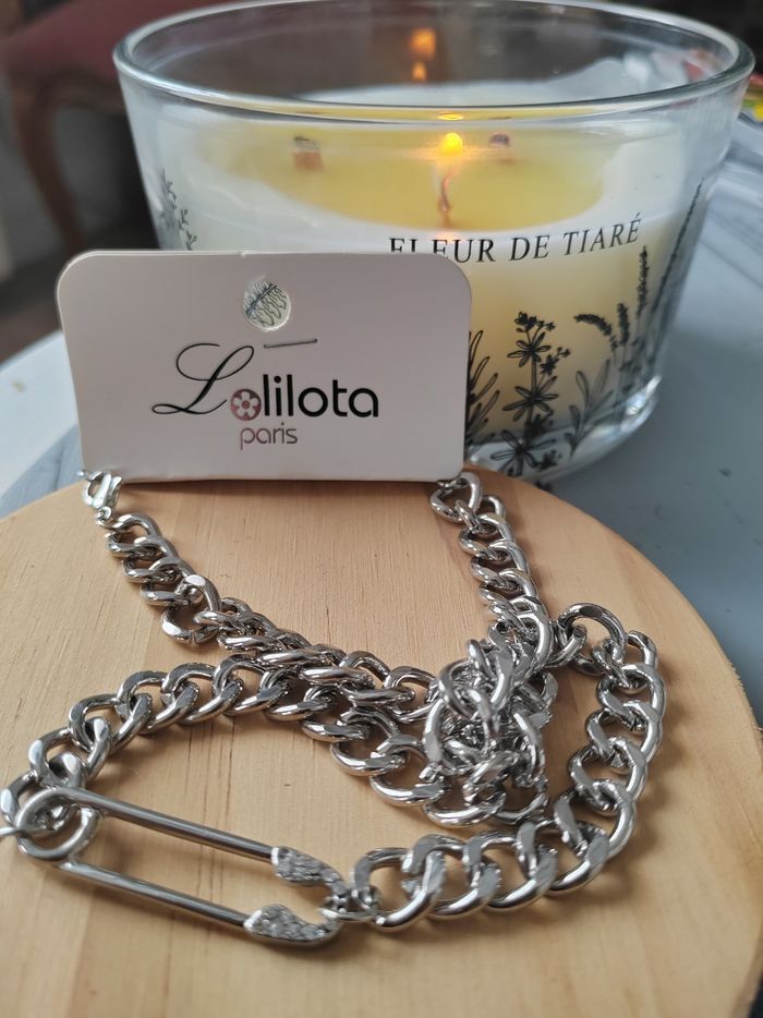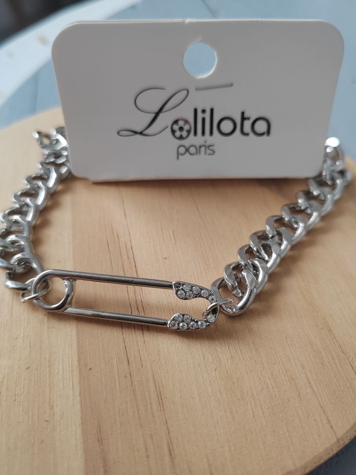 Collier acier inoxydable lolilota argenté détails épingle à nourrice