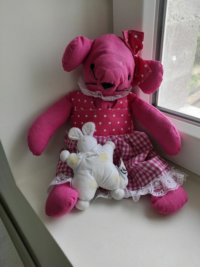 Lot 2 peluches Une fabriquée main et un petit lapin 🐰 marque Yves Delorme