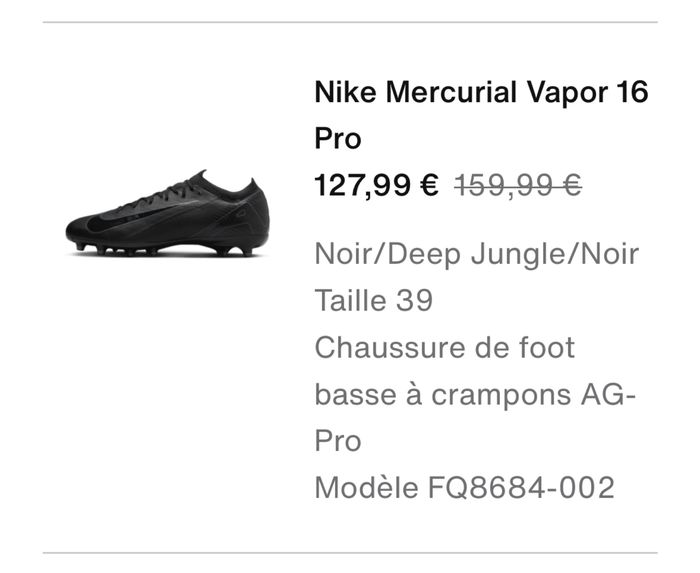 Vends crampon Nike ZM PRO VAPOR 16 AG-pro Jamais porté seulement essayé à la maison à la réception mais trop petite délai 30 jours dépassé pour un retour chez Nike
