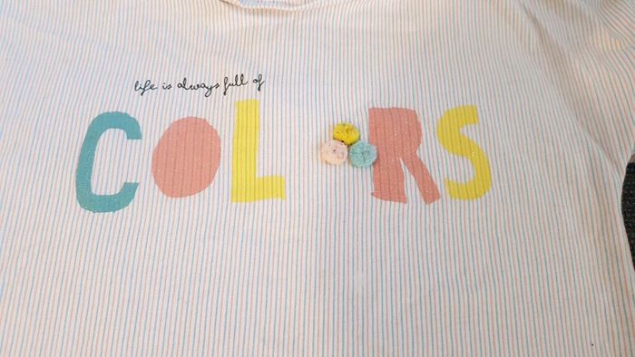 tshirt manche court avec petits pompons boutonné en haut du dos en bon état