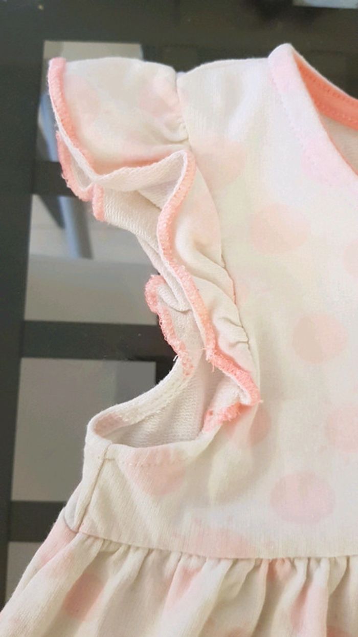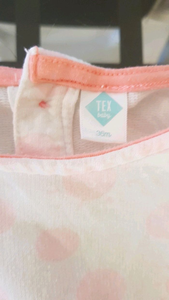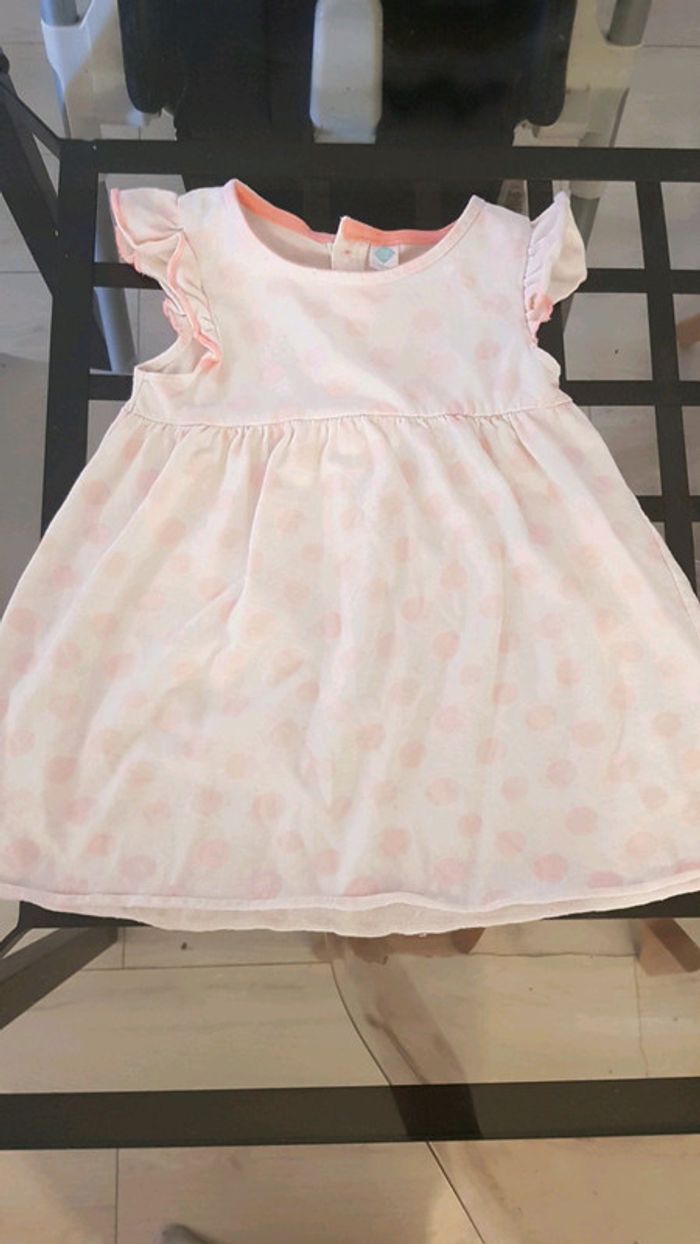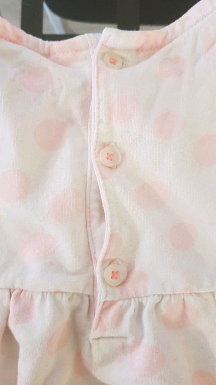 robe blanche avec des ronds rose clairs boutonné en haut du dos porté mais en bon état