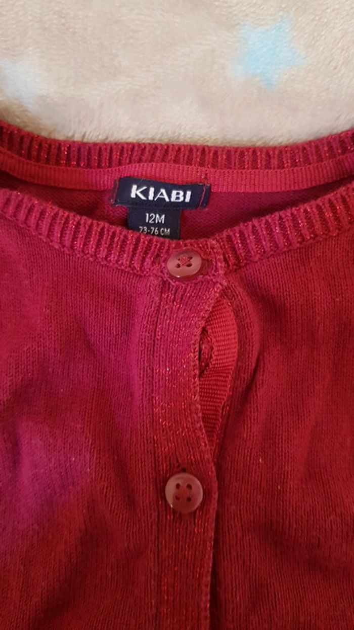 Gilet taille 12 mois de chez Kiabi En très bon état porté peu de fois il est de couleur Bordeaux