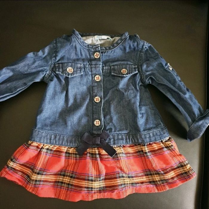 Robe chemise en jean Jupe tissu écossais Taille 6 mois Porté 1 fois Manche qui se retroussent #gabotchbebe #gabotch6mois