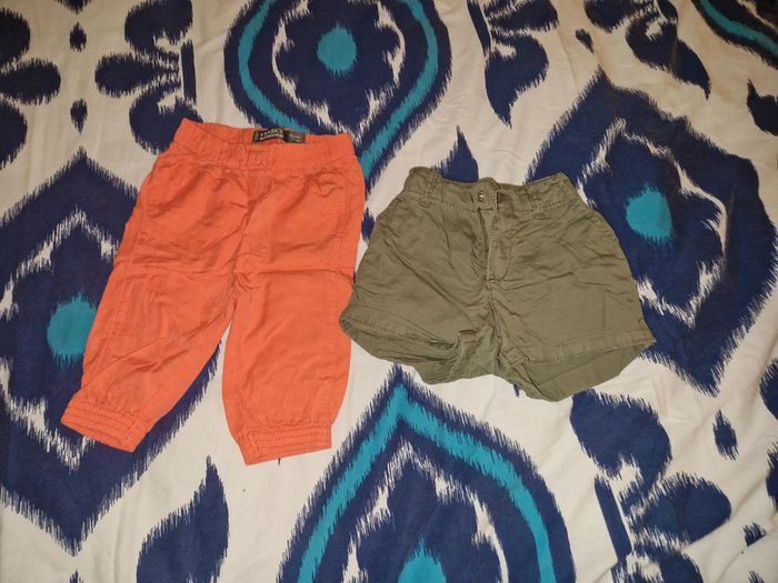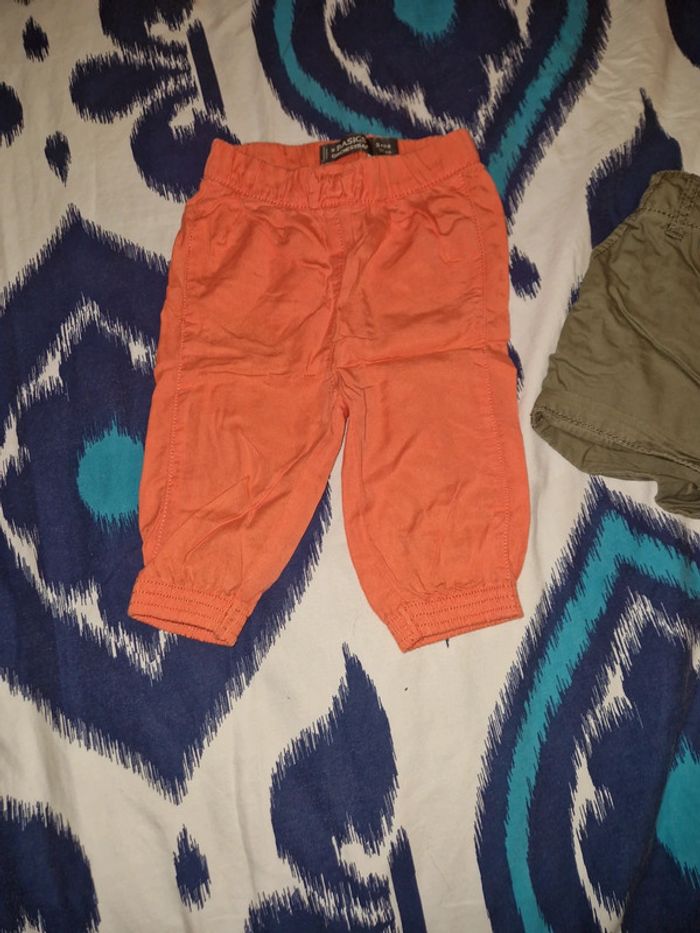 9mois fille short kaki et pantalon fin corail