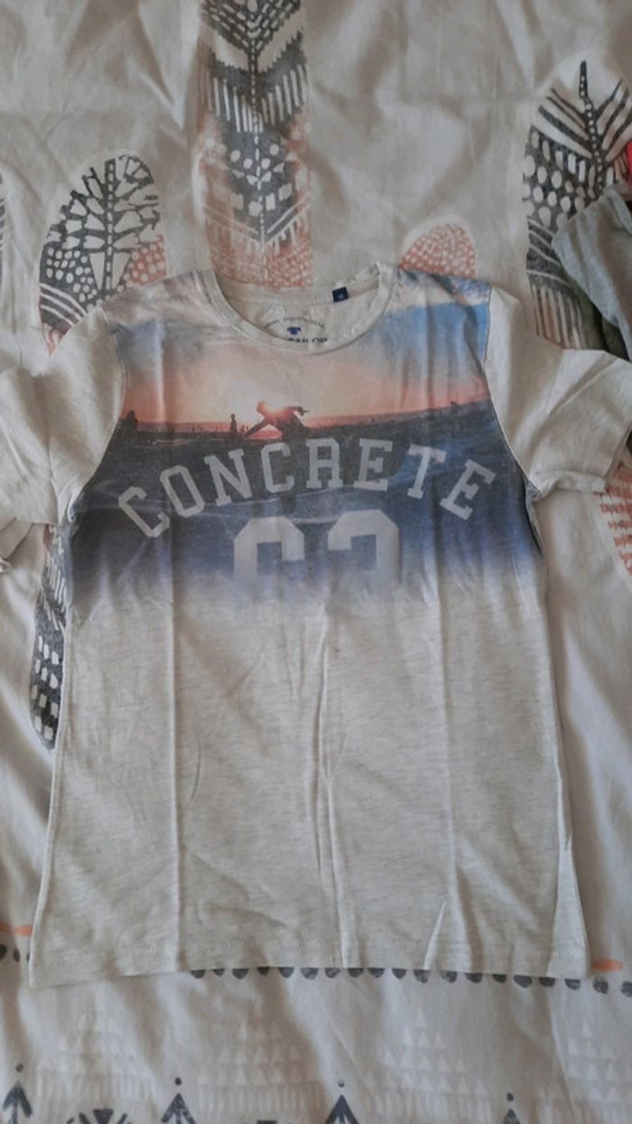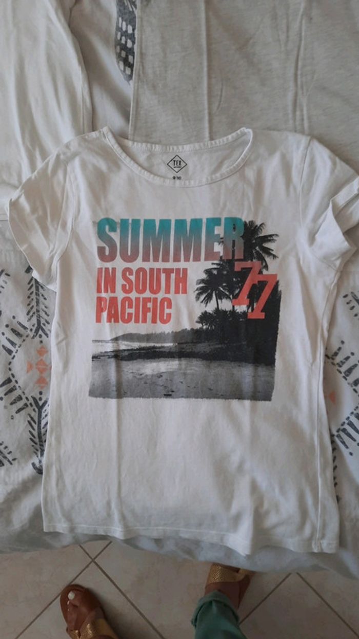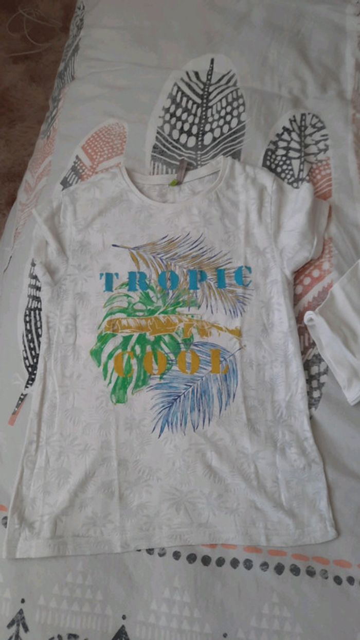 Lot garcon 10ans été Il y a le cuba vert d eau qui a une légère tache mais qui vraiment se voit peu ...j essaierai de la faire partir au lavage au moment de la vente.le sommer c est un 9-10ans