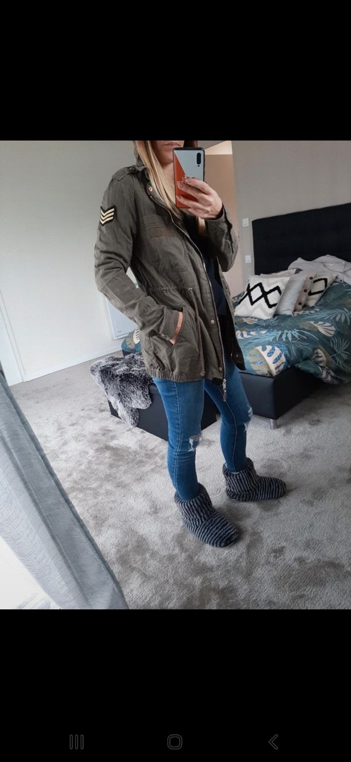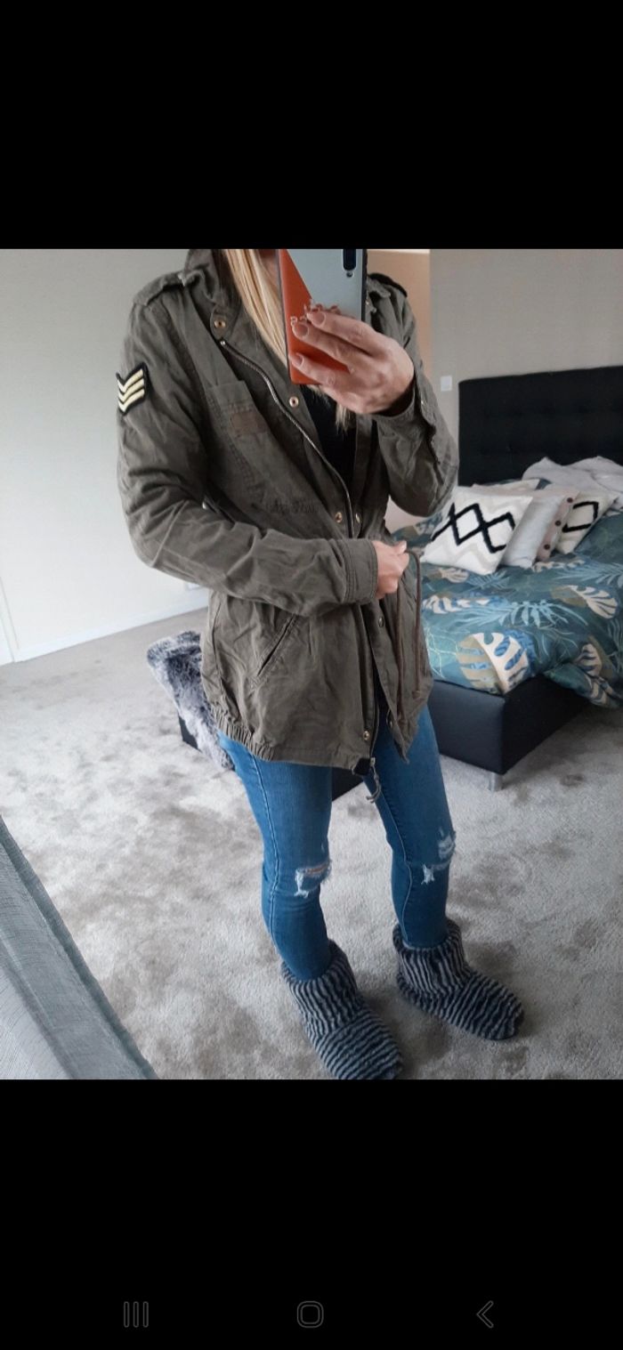 Veste kaki bouton pression et on peu resserrer à la taille en très bon état taille s de chez pimkie