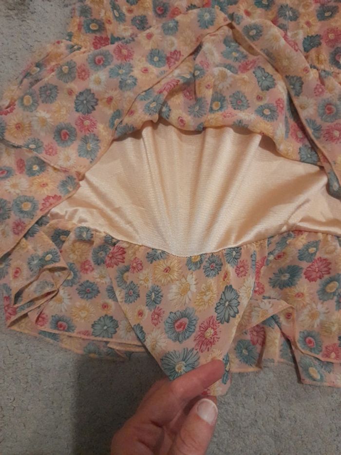Haut non double, bas de la robe double. Couleur rose pale avec imprimé fleurs