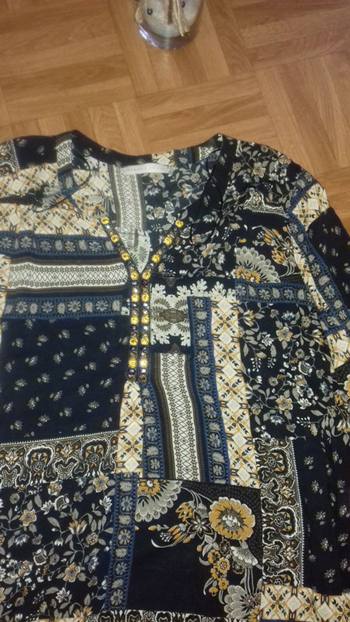 État impeccable. Tunique col v. Petits détails au niveau du décolleté. Manches 3/4. Photo avec et sans flash. #42vetementfemmecali91300