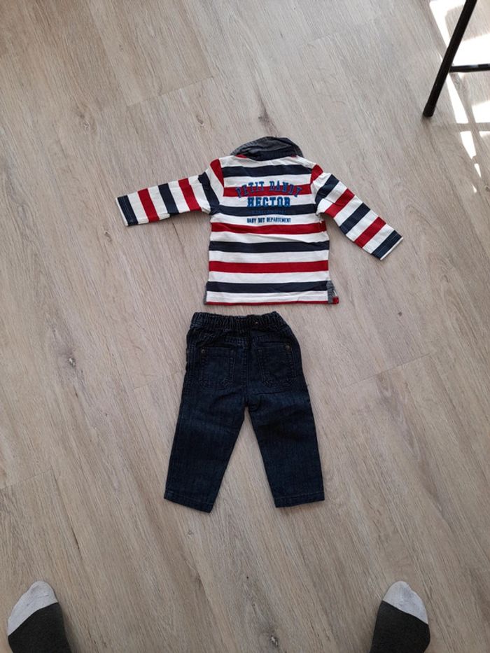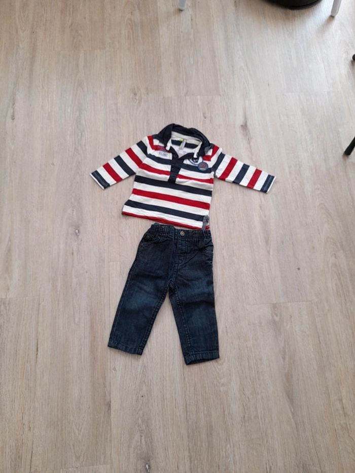 Tres bon état, aucun défaut ni trace d usure. Composé d un polo manches longues et d un jean taille élastique et boutons pressions. 6 mois 67 cm #6moisgarconcali91300