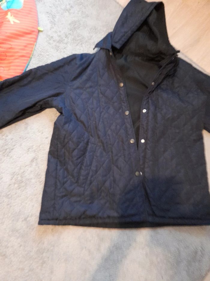 Parfait état. Un côté noir et un côté marine effet matelassé. Poches des 2 côtés et fermeture par pressions. 66 cm d aisselles à aisselles. #42vetementfemmecali91300 #44vetementfemmecali91300 #46vetementfemmecali91300