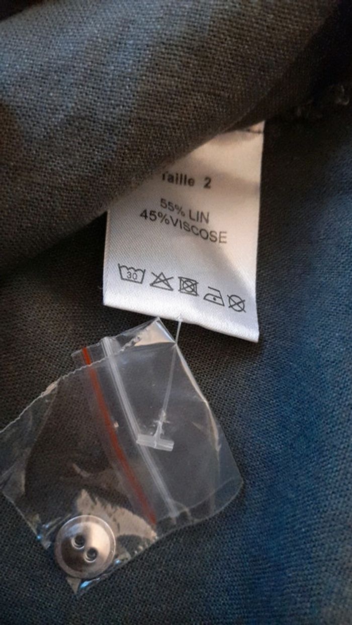 Neuf sans étiquette. Il reste le bouton accroche à l étiquette. 55%lin 45%viscose. Broderies sur les épaules. Col v. Taille 2 chez C.Laure correspond à du 42/44 #42vetementfemmecali91300 #44vetementfemmecali91300