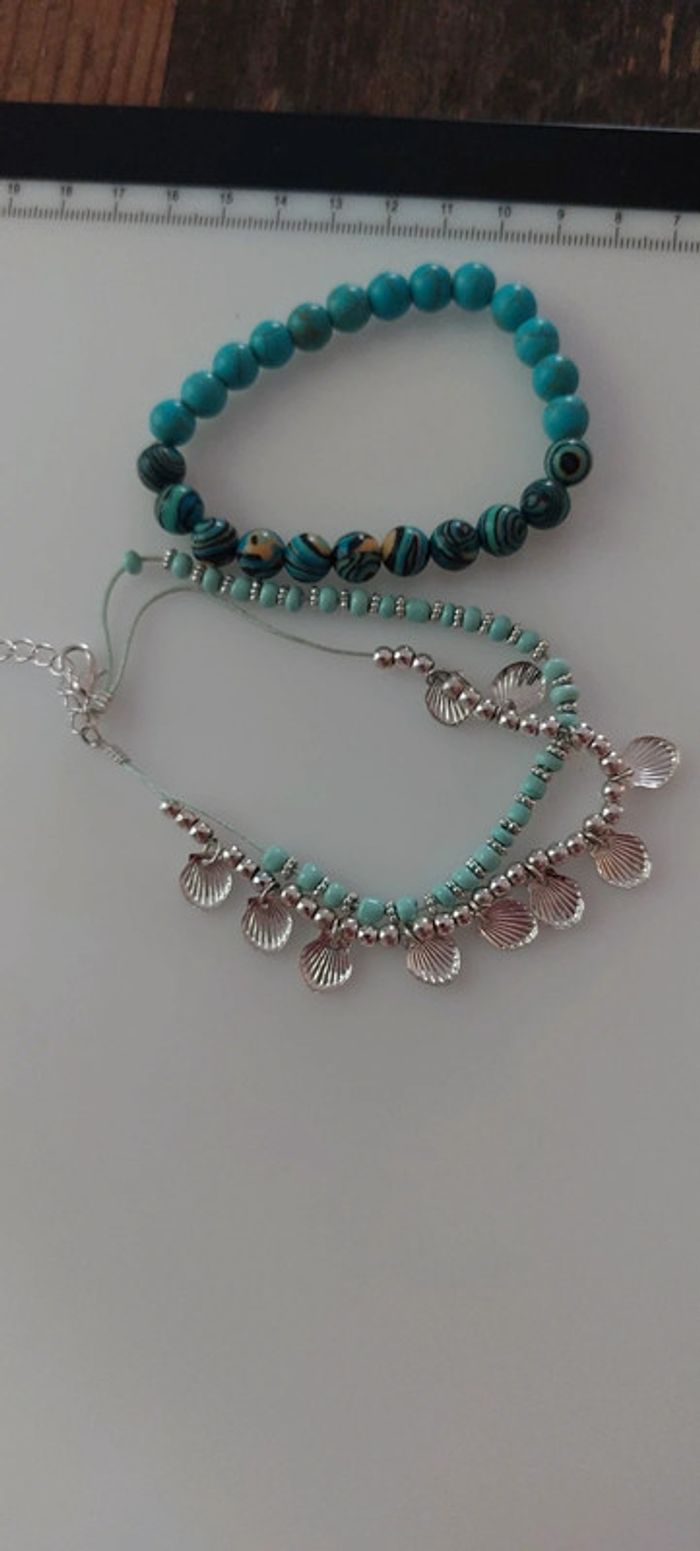 Lot composé d'un bracelet perles rondes Et d'une chaîne de cheville perles et coquillages