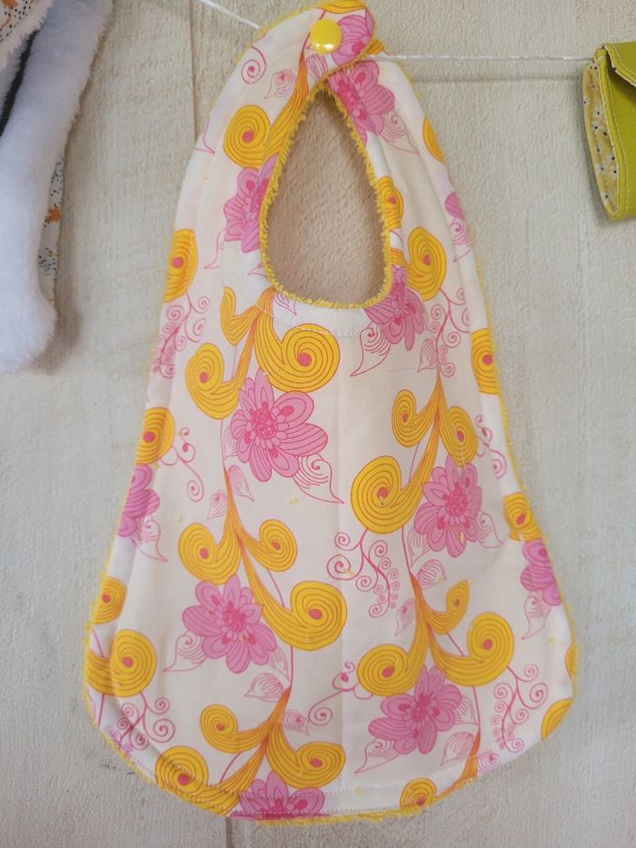 Bavoir en tissu coton et tissu éponge avec son attache pression