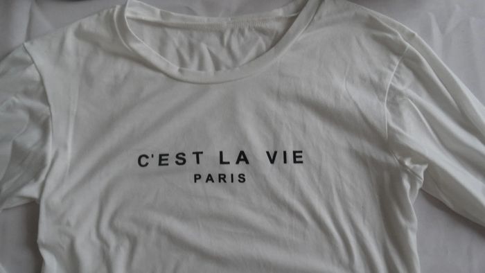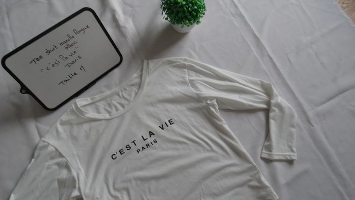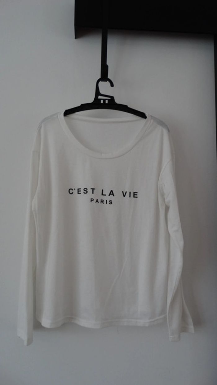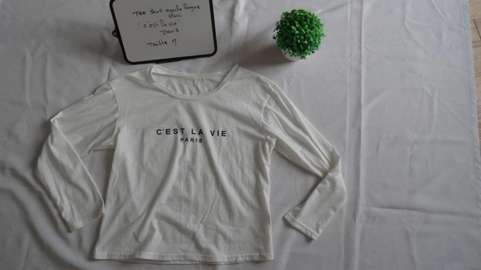 Tee shirt blanc manche longue écriture noir " C est la vie paris " Taille M