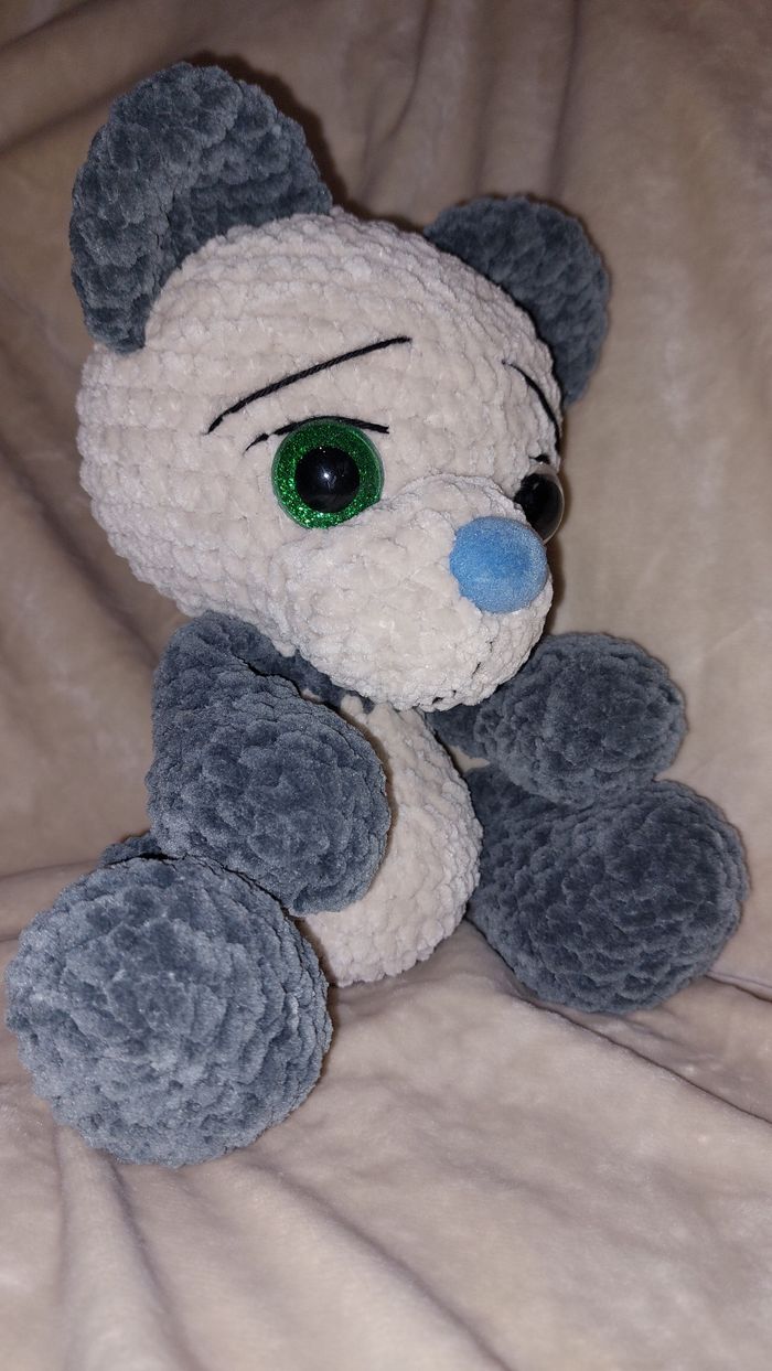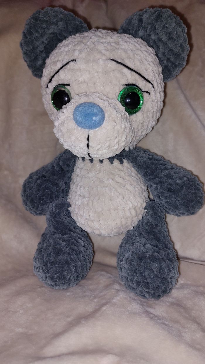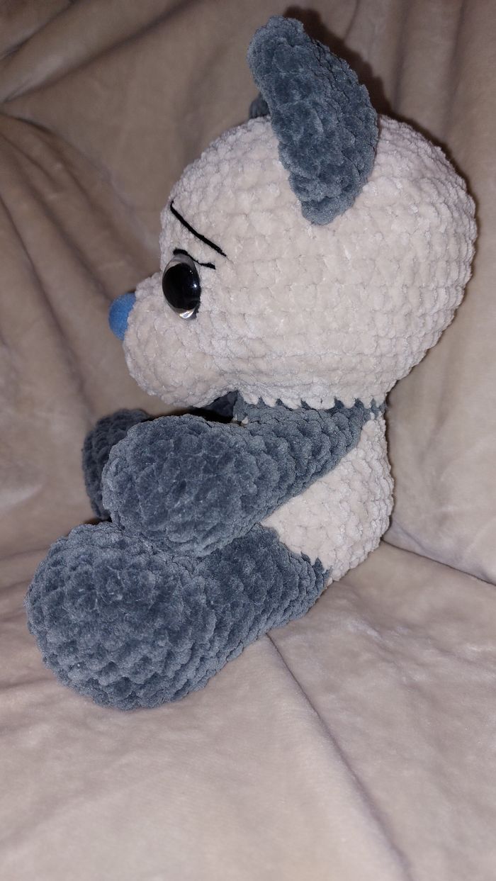 Ourson gris beige au crochet réalisé à la main. Yeux sécurisés. Laine velours. Ne convient pas aux enfants de moins de 3 ans. Peut être utilisé en décoration sans problème. Il mesure environ 25cm de haut