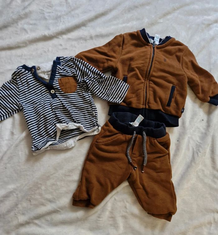 Ensemble okaidi : un survêtement (10€ sur le site), un gilet (13€ sur le site) et un tee-shirt manches longues 3 mois #ameliejuju30_3mois