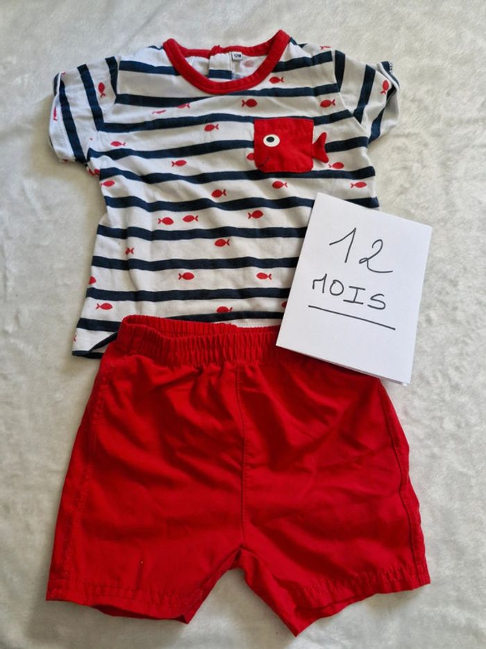 Ensemble : 1 short 1 tee shirt Neuf 12 mois #ameliejuju30_12mois