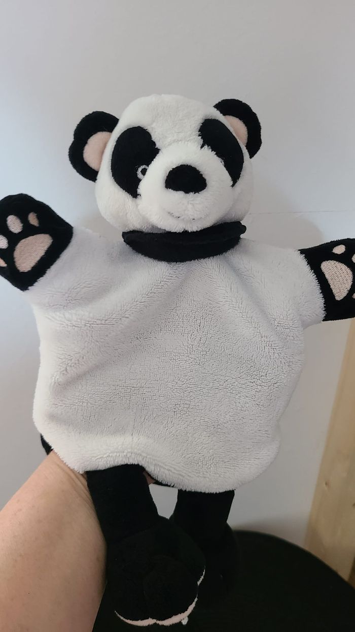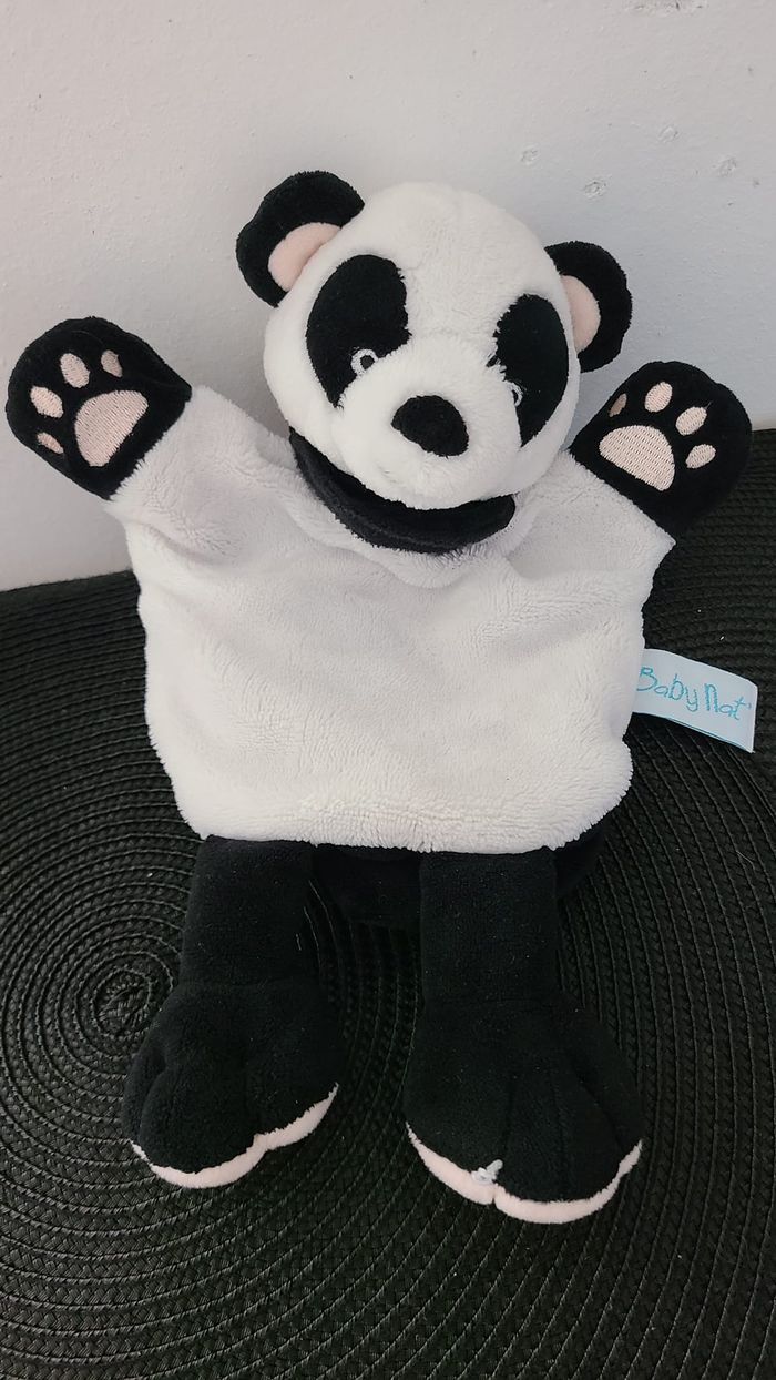 Doudou Panda Noir Blanc Marionnette Baby Nat - photo numéro 1