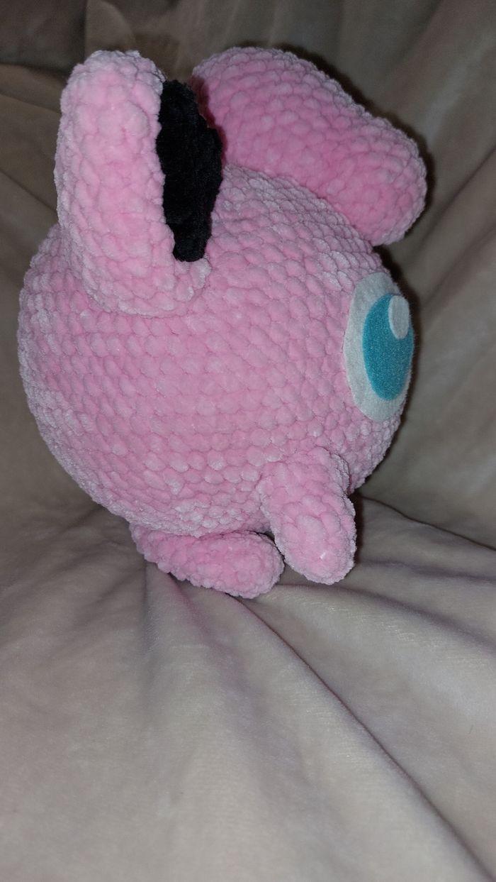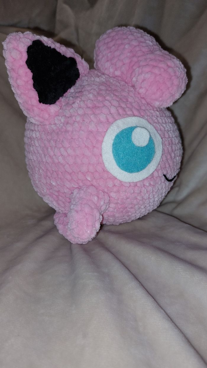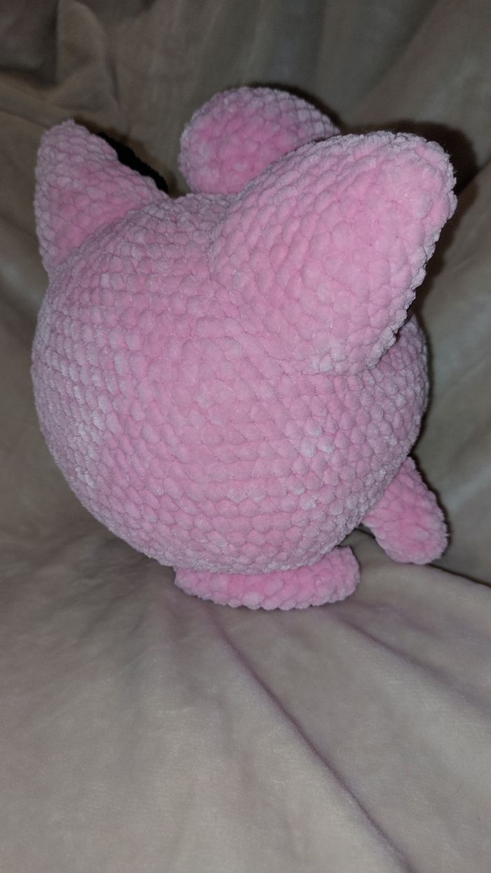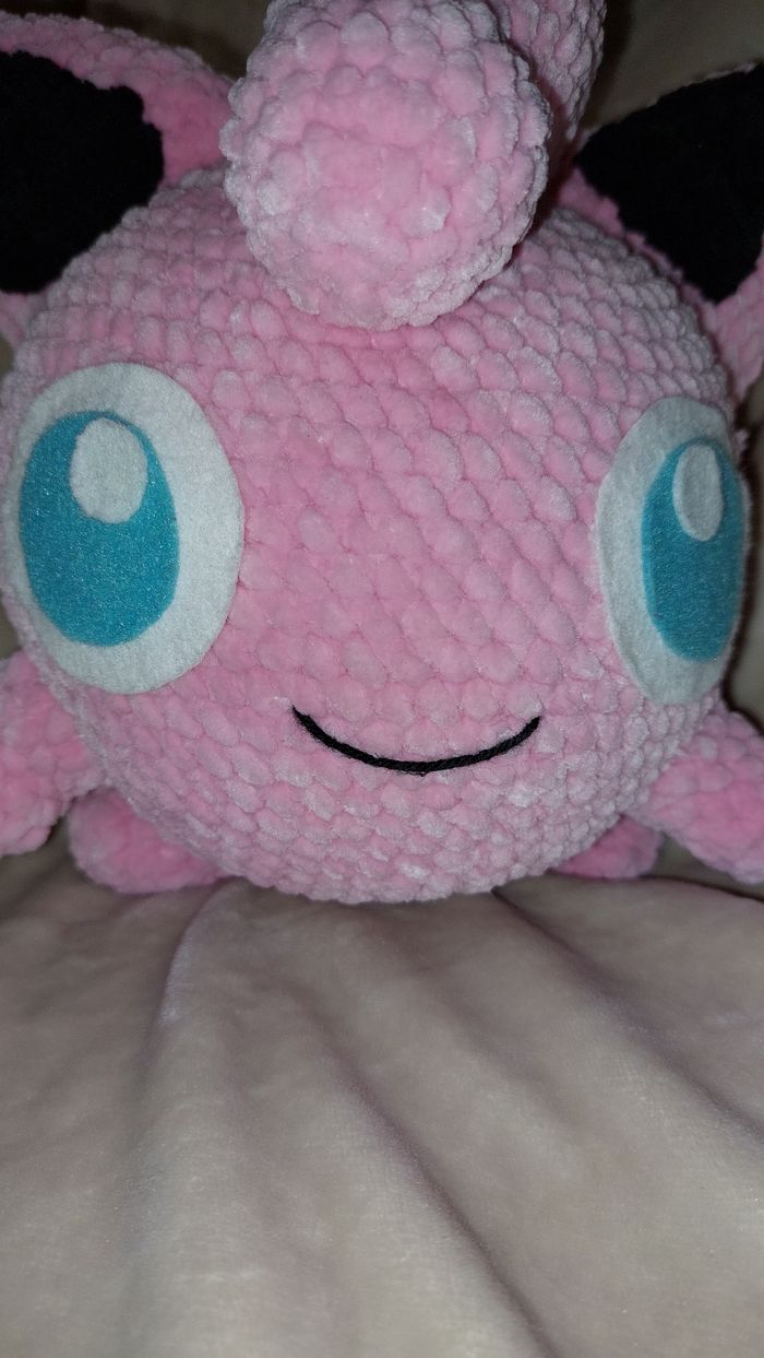 Rondoudou au crochet réalisé à la main. Yeux en feutrine collée. Laine velours. Ne convient pas aux enfants de moins de 3 ans. Peut être utilisé en décoration sans problème. Il mesure environ 18cm de haut