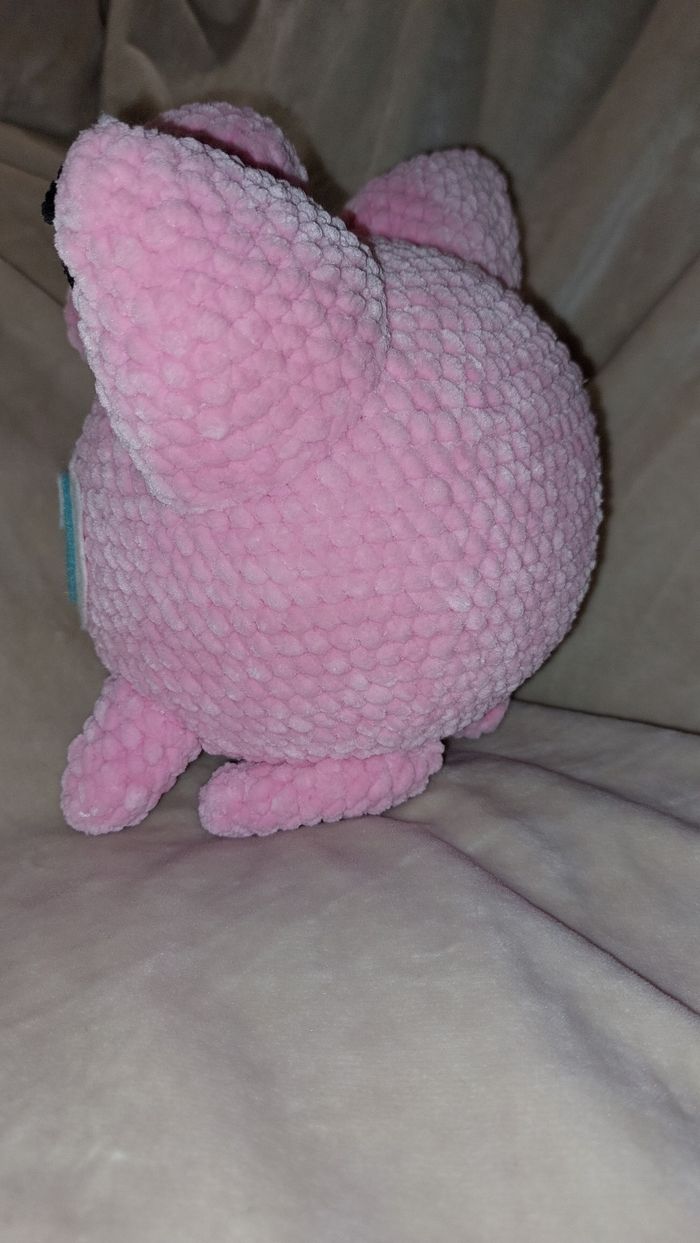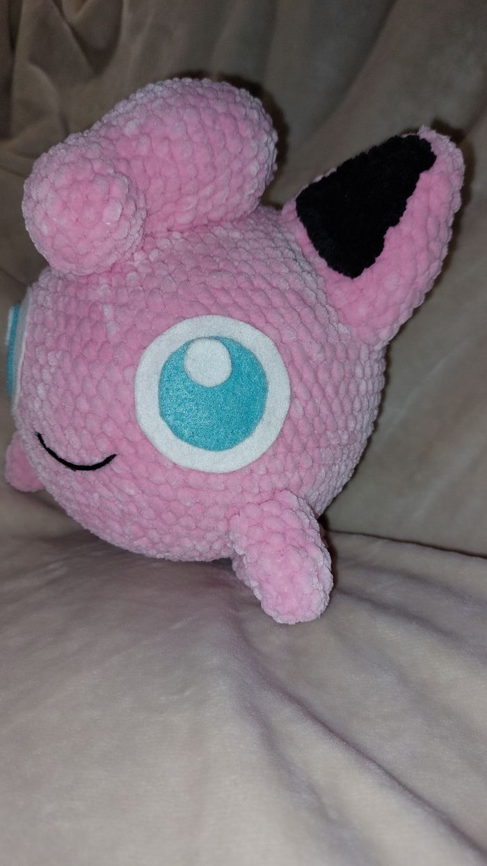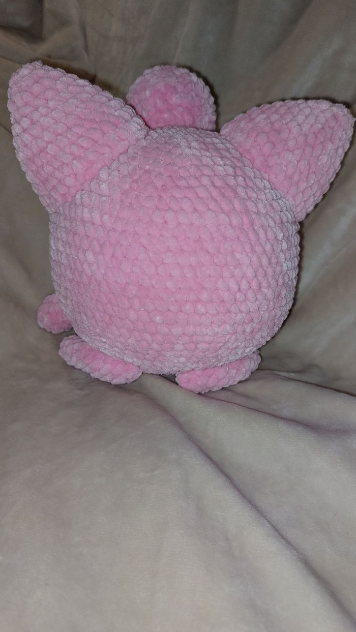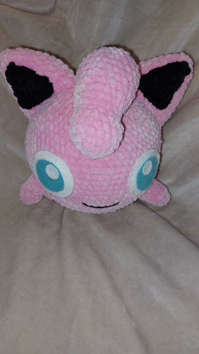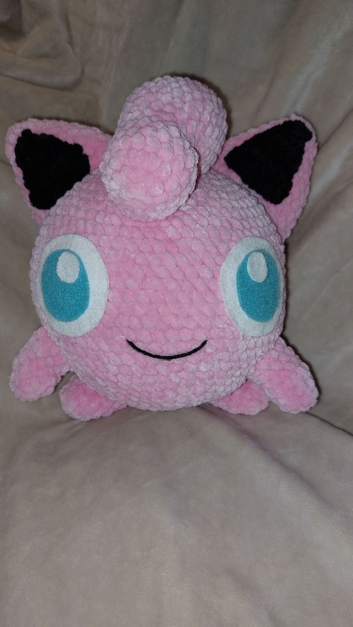 Rondoudou au crochet réalisé à la main. Yeux en feutrine collée. Laine velours. Ne convient pas aux enfants de moins de 3 ans. Peut être utilisé en décoration sans problème. Il mesure environ 18cm de haut