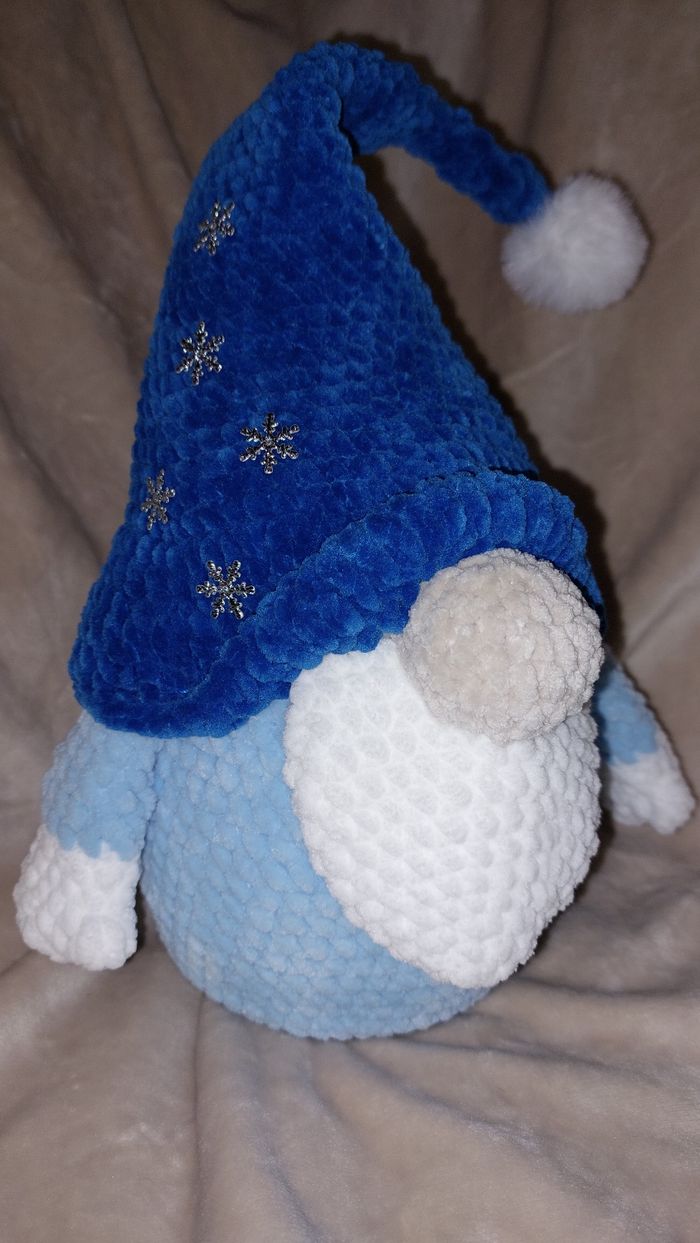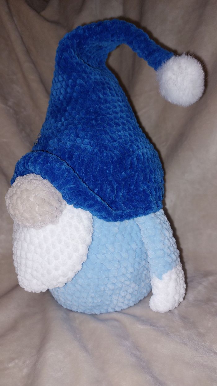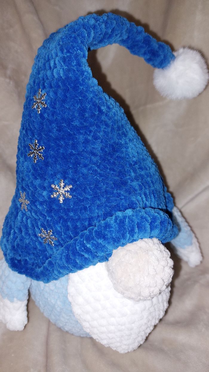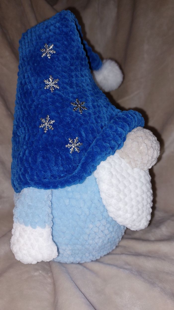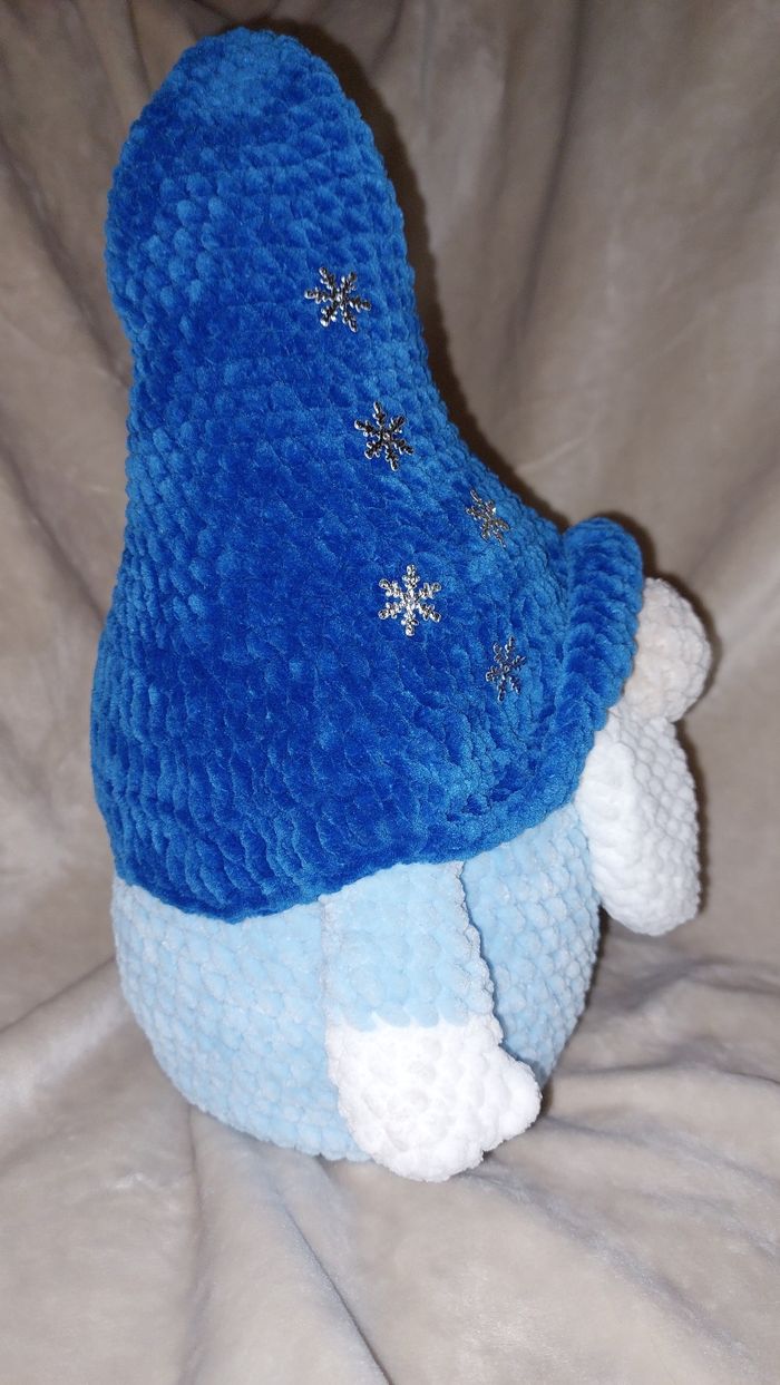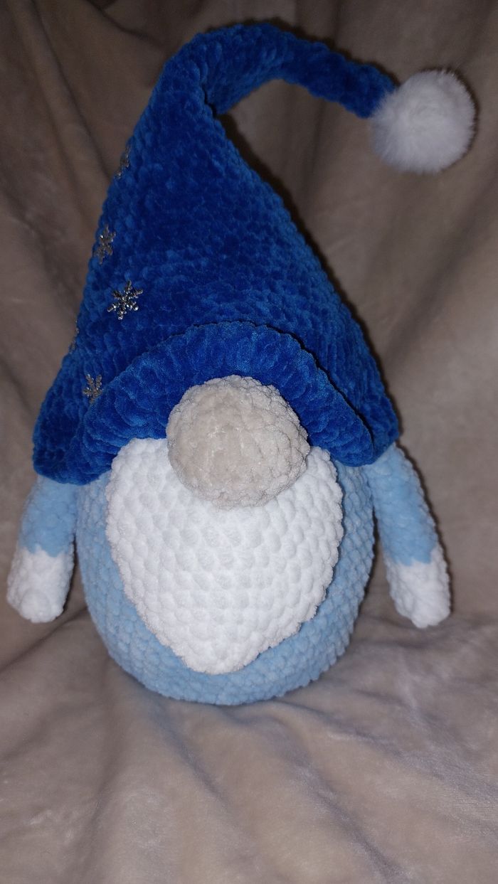 Gnome d'hiver au crochet réalisé à la main. Yeux sécurisés. Laine velours. Ne convient pas aux enfants de moins de 3 ans. Peut être utilisé en décoration sans problème. Il mesure environ 35 cm de long