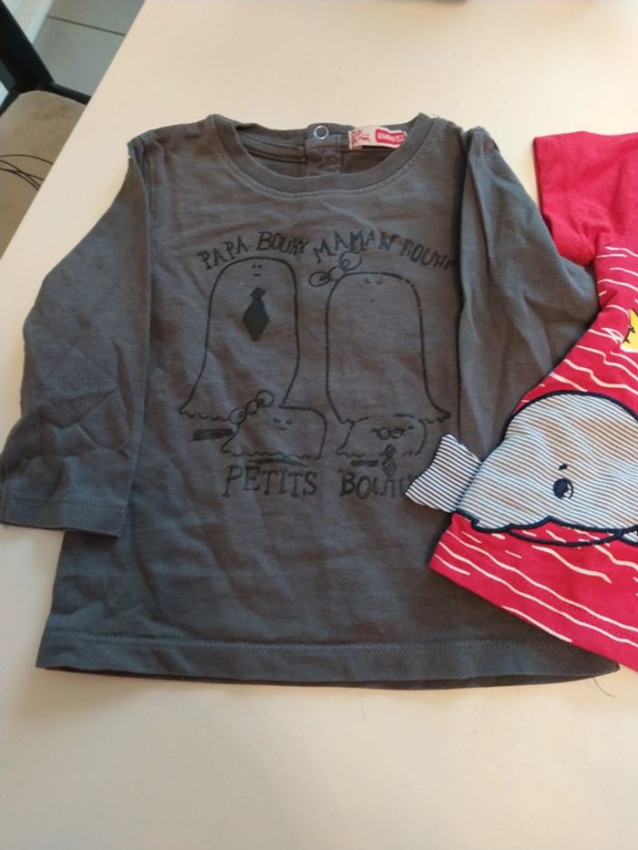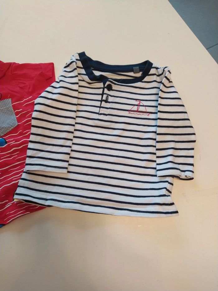 Lot de 3 tee-shirts manches longues et courtes 2 manches longues 1 manche courtes 6 mois
