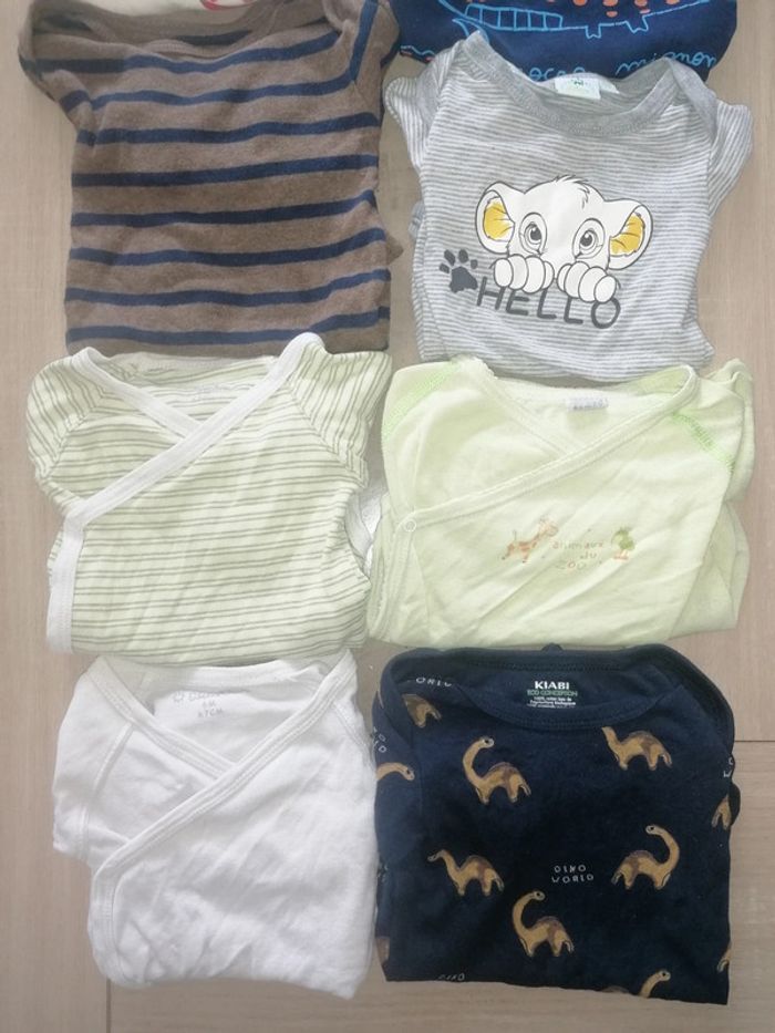 Lot de 10 bodies manches longues dont 4 avec ouverture devant. Bon état à très bon état. Différentes marques: kitchoun, kiabi... #marjo64000_Garçon6mois