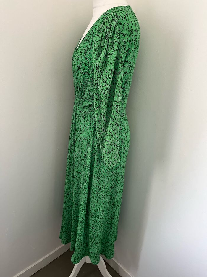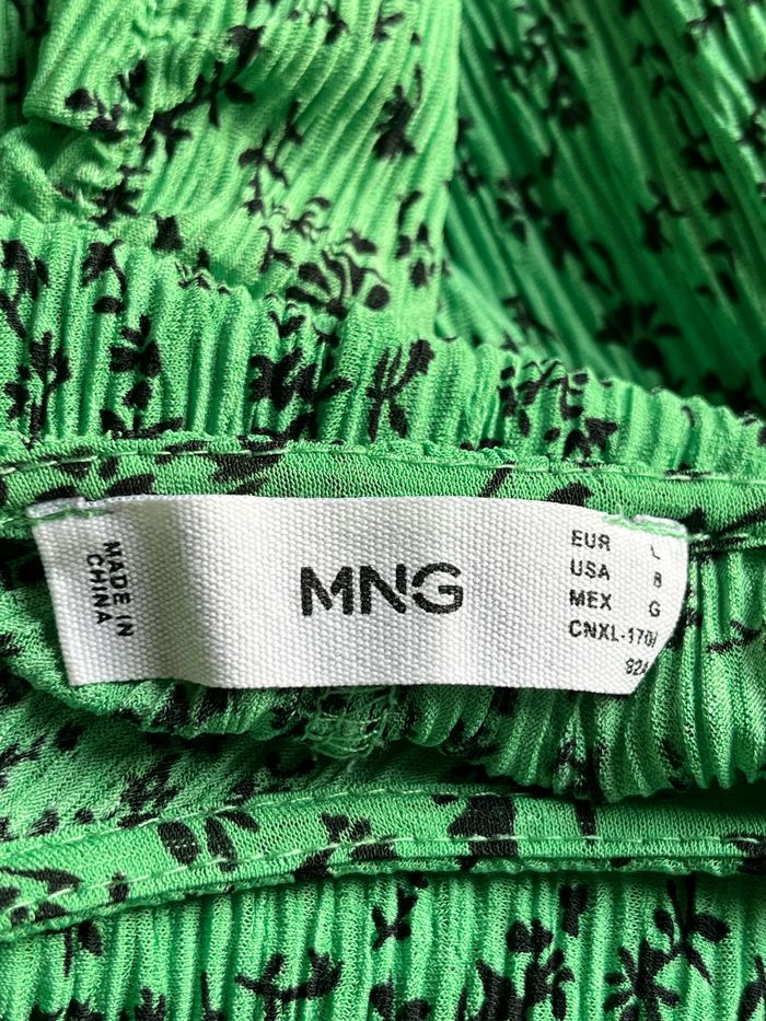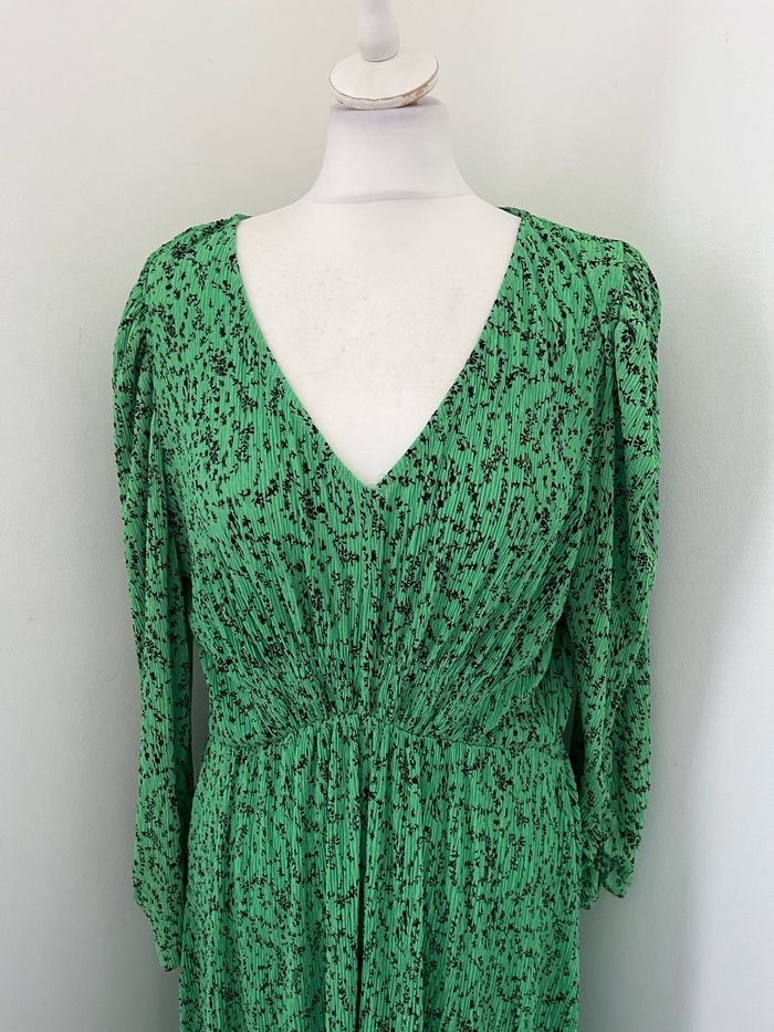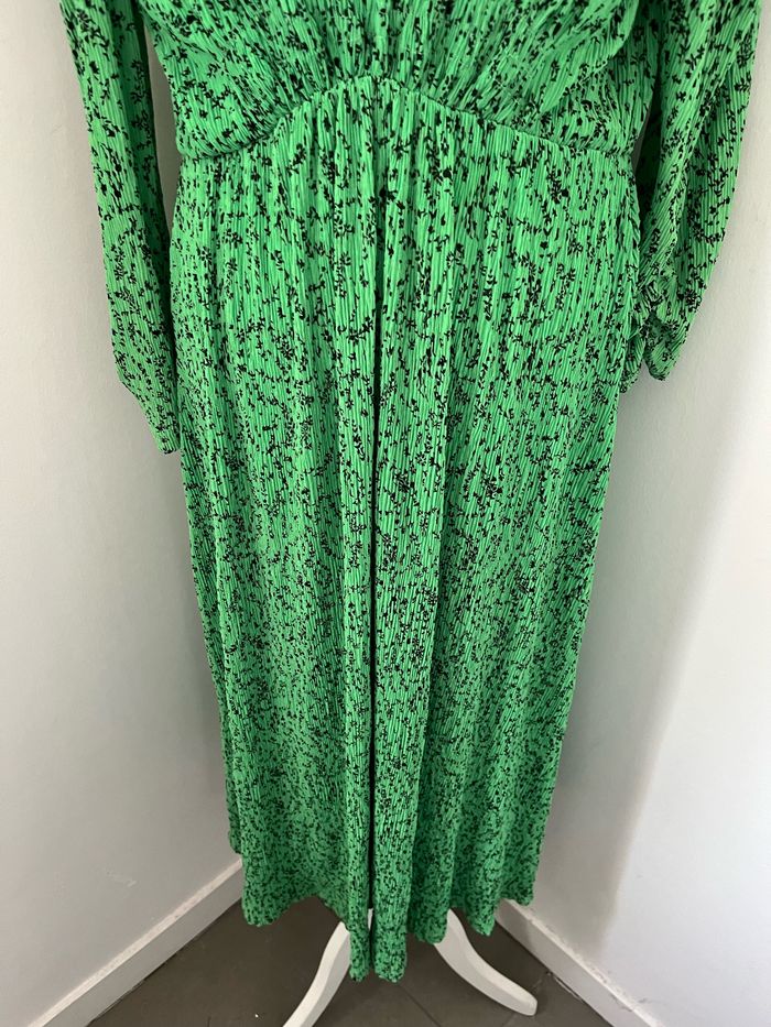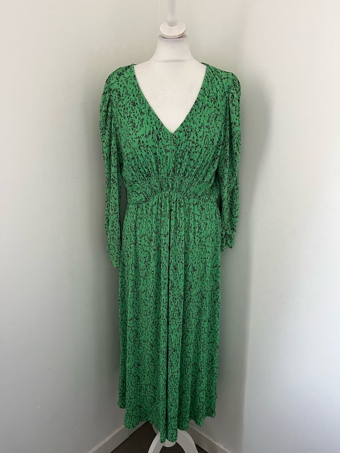 Vends jolie robe longue Mng Cintrée Verte à motifs