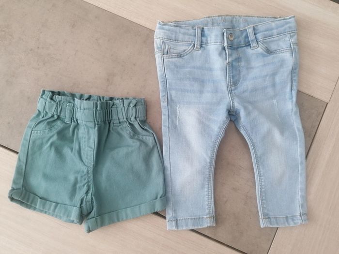 Lot de 2 bas bébé fille 12 mois. 1 pantalon et 1 short. Tous les 2 de Gémo et en très bon état.