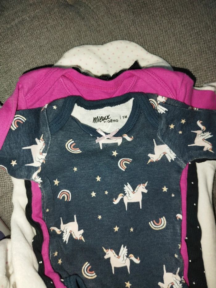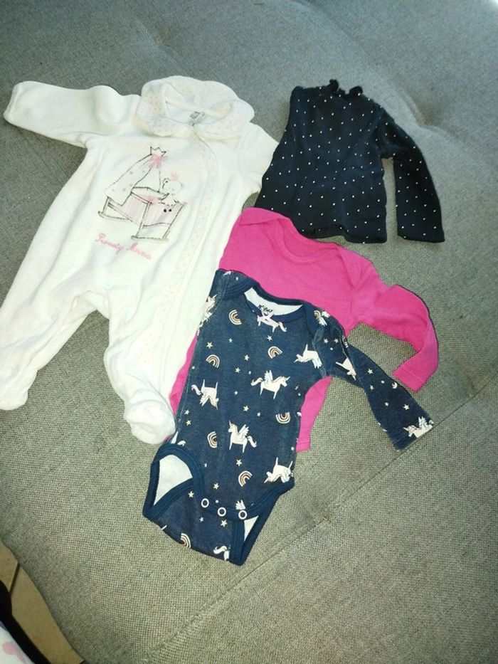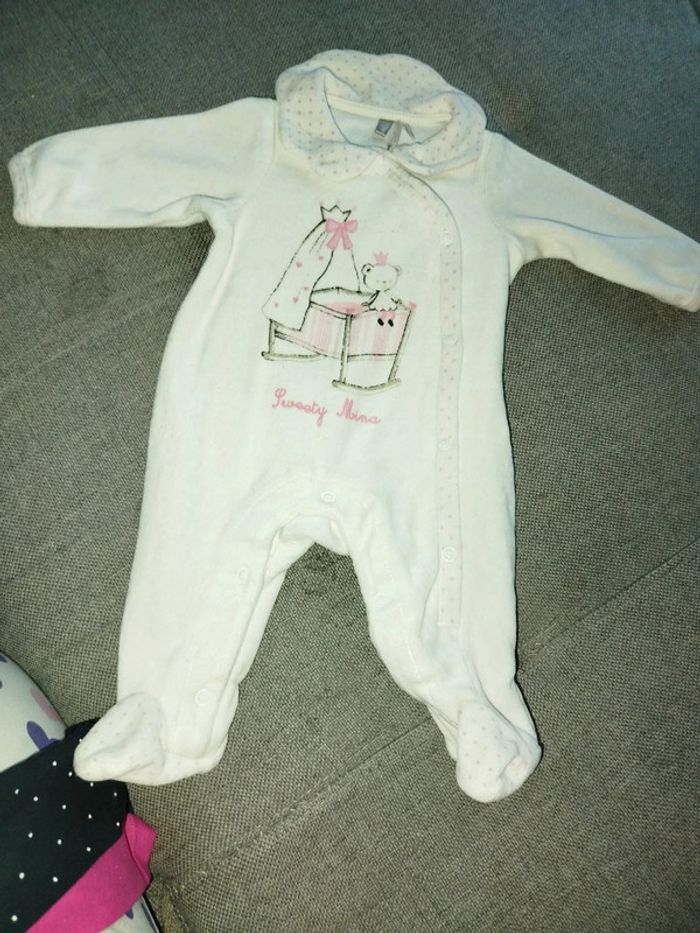 Lot 1mois fille 2 bodie manche longue ' tee shirt manche longue bouton tout le long du dos et un jymaa hiver blanc et rose ouverture pression devant et au entrejambe le tout en très bon état #1mois #cecemomo1moisfille