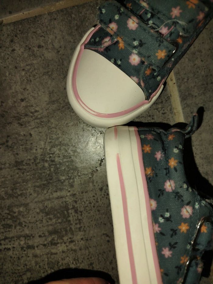 Basket a scratch motif fleur Fond bleu /gris motif fleur orange rose blanc Très bon état Un peu de traîner rose effacé mais elle reste en très bon état a par ça #22 #basketfleuri