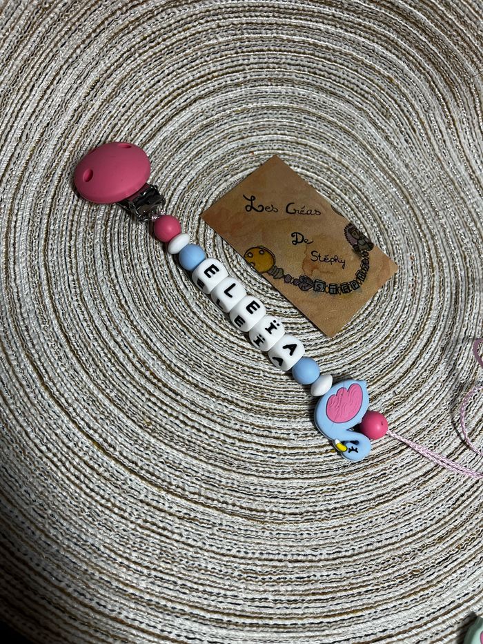 Pour passer commande il suffit de valider le paiement sur l’annonce du modèle désiré et de m’envoyez le prénom de l’enfant par message que je puisse réaliser votre commande A partir de 2 articles vous bénéficiez de 5% de réduction 🥰 Réalisation dans la journée et envoie dès le lendemain ( mardi , jeudi et samedi ) Attention l’adaptateur de tétine mam et en supplément à 1€ Une petite photo du modèle terminé et toujours envoyez que vous puissiez vérifier ☺️