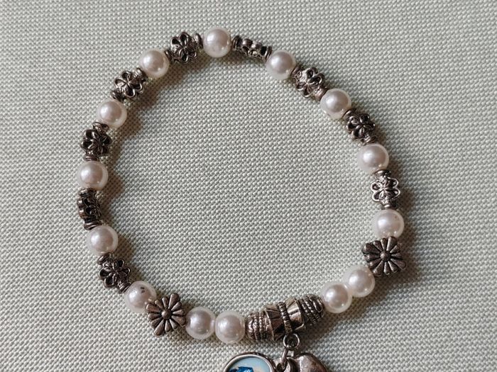 Bracelet vintage en perles Perles blanches et perles en métal argenté Bon état général Élastique ➡️ #ursullabuffaybijoux