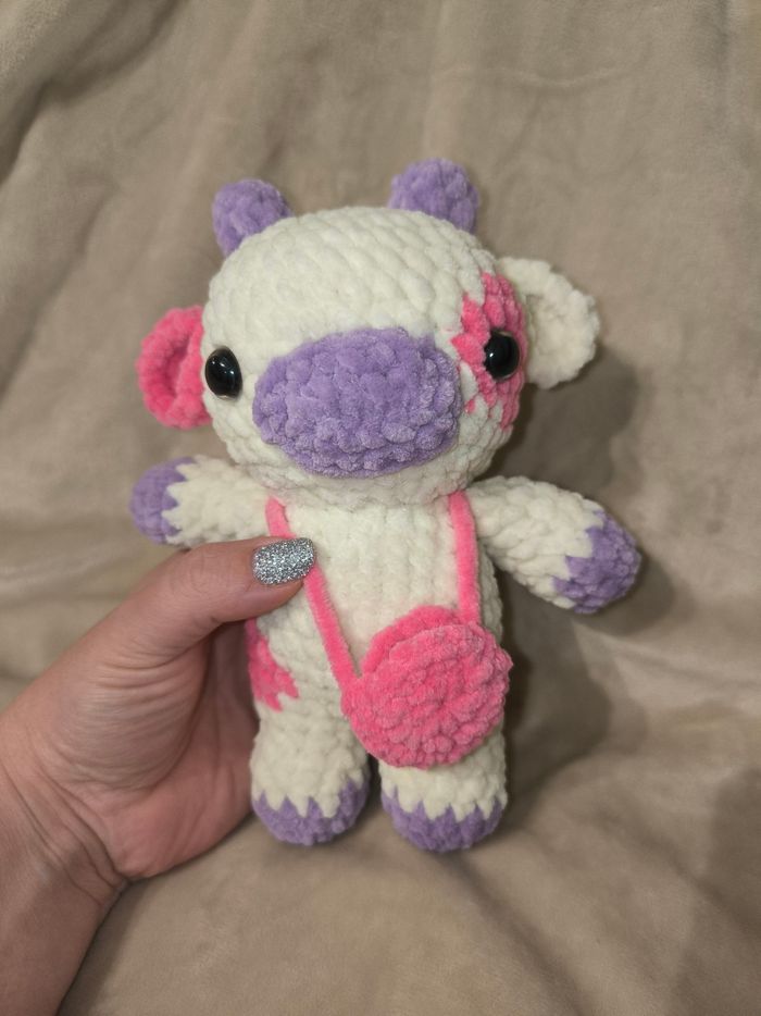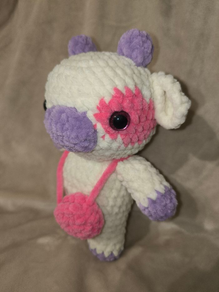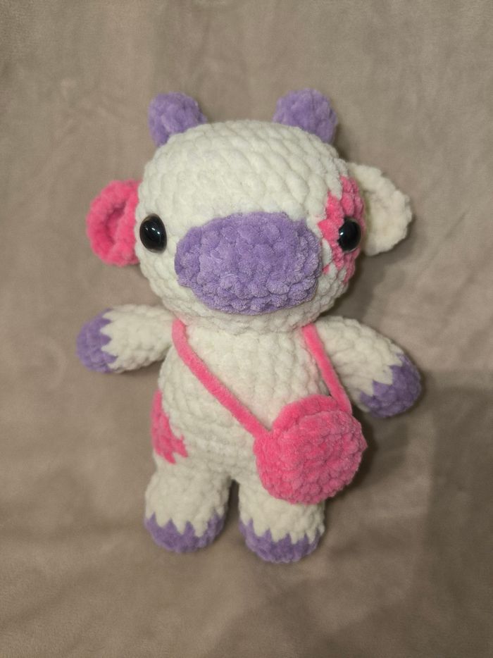 Vachette au crochet réalisé à la main. Yeux sécurisés. Laine velours. Ne convient pas aux enfants de moins de 3 ans. Peut être utilisé en décoration sans problème. Il mesure environ 19cm de long