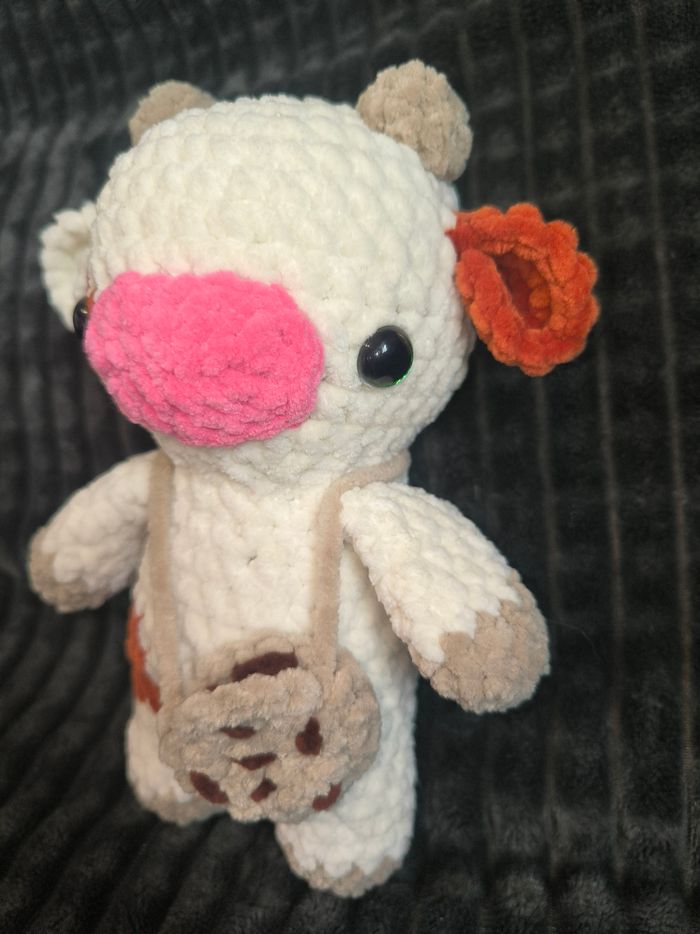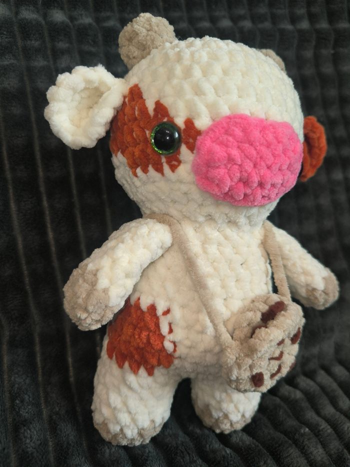 Vachette au crochet réalisé à la main. Yeux sécurisés. Laine velours. Ne convient pas aux enfants de moins de 3 ans. Peut être utilisé en décoration sans problème. Il mesure environ 22cm de long