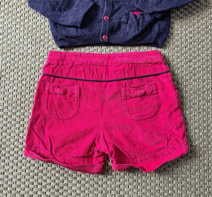 Ensemble assorti gilet + short + collant marine et rouge - 12 mois - photo numéro 3