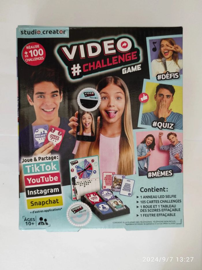 NEUF jamais utilisé Canal Toys- Mini Vidéo Challenge UN JEU POUR TOUS : un jeu multi-joueurs adapté aux enfants et aux adultes pour passer de bons moments en famille ou entre amis. DES REGLES SIMPLES : Tourne la roue pour découvrir les actions que tu vas devoirs réaliser ! DES QUIZ & DES MÈMES ! : Seras-tu capable de répondre à tous les quiz ou de créer des mèmes en moins de 15 secondes? 30 cartes Quiz et 30 cartes Mème à découvrir ! Parfait pour la maison ou à emporter en voyage, défie tes amis avec ce jeu Mini Vidéo Challenge. Tourne la roue pour découvrir les défis que tu vas devoir réaliser!