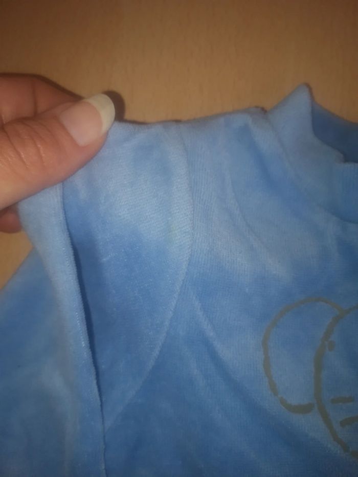1 pommette et 1 sans marque. 1 minuscule tache sur l'un et 1 col légèrement jauni sur l'autre. Pyjama 1 pièce en velours